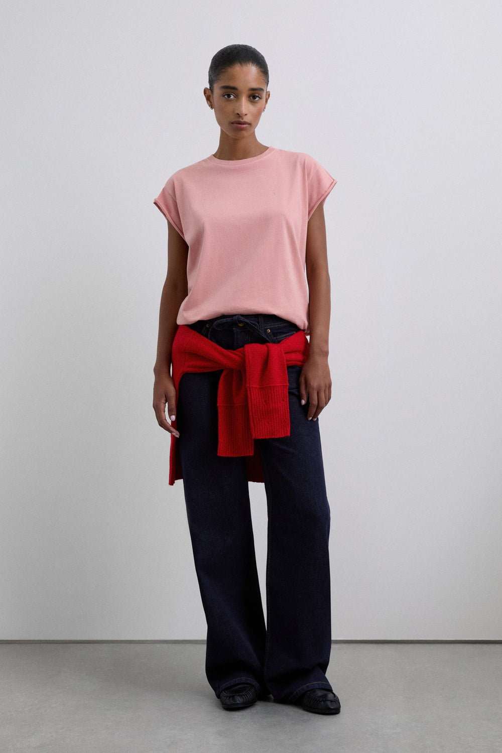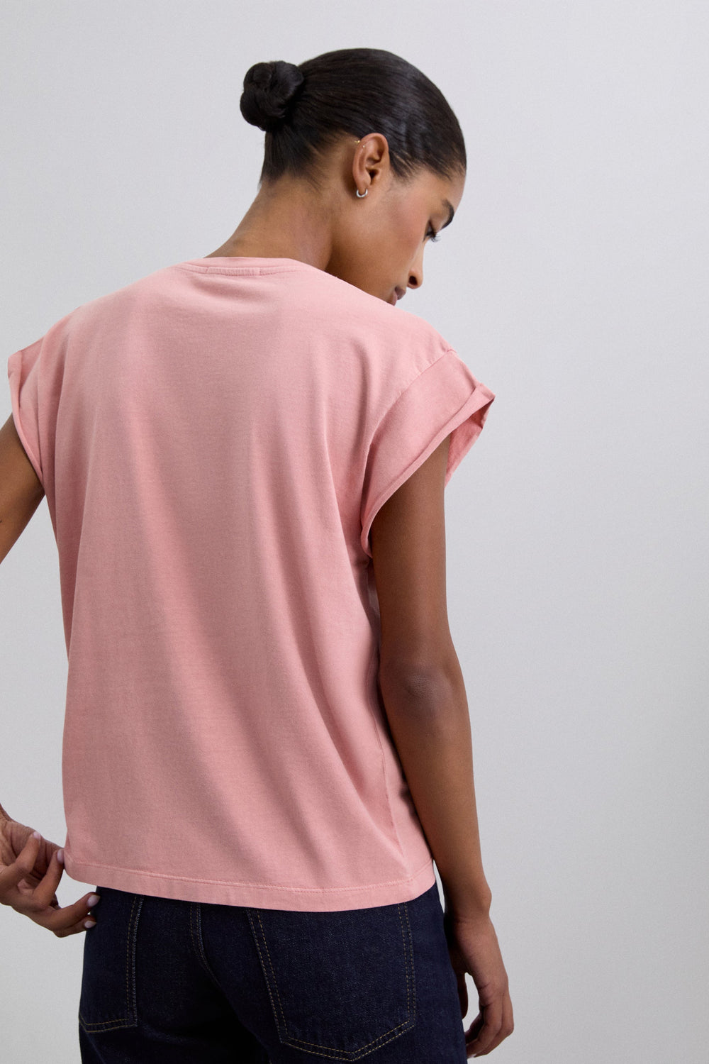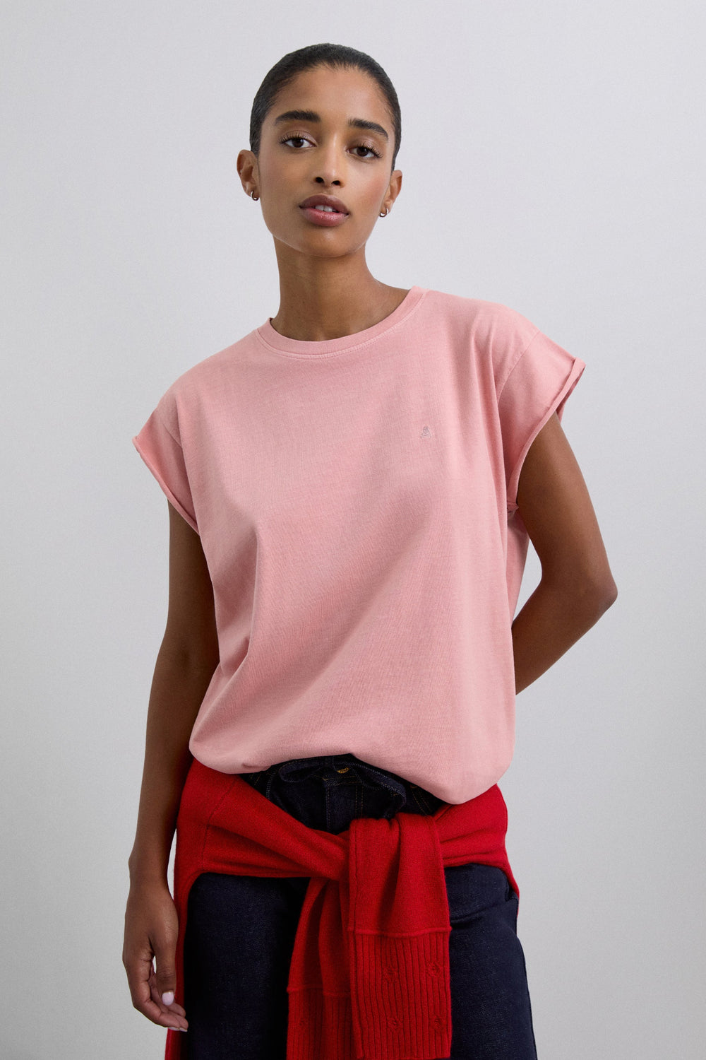 Camiseta confeccionada en 100% algodón orgánico. Corte regular fit, cuello redondo y manga sisa. Detalle de logo bordado a tono en pecho.