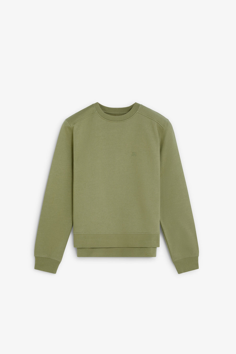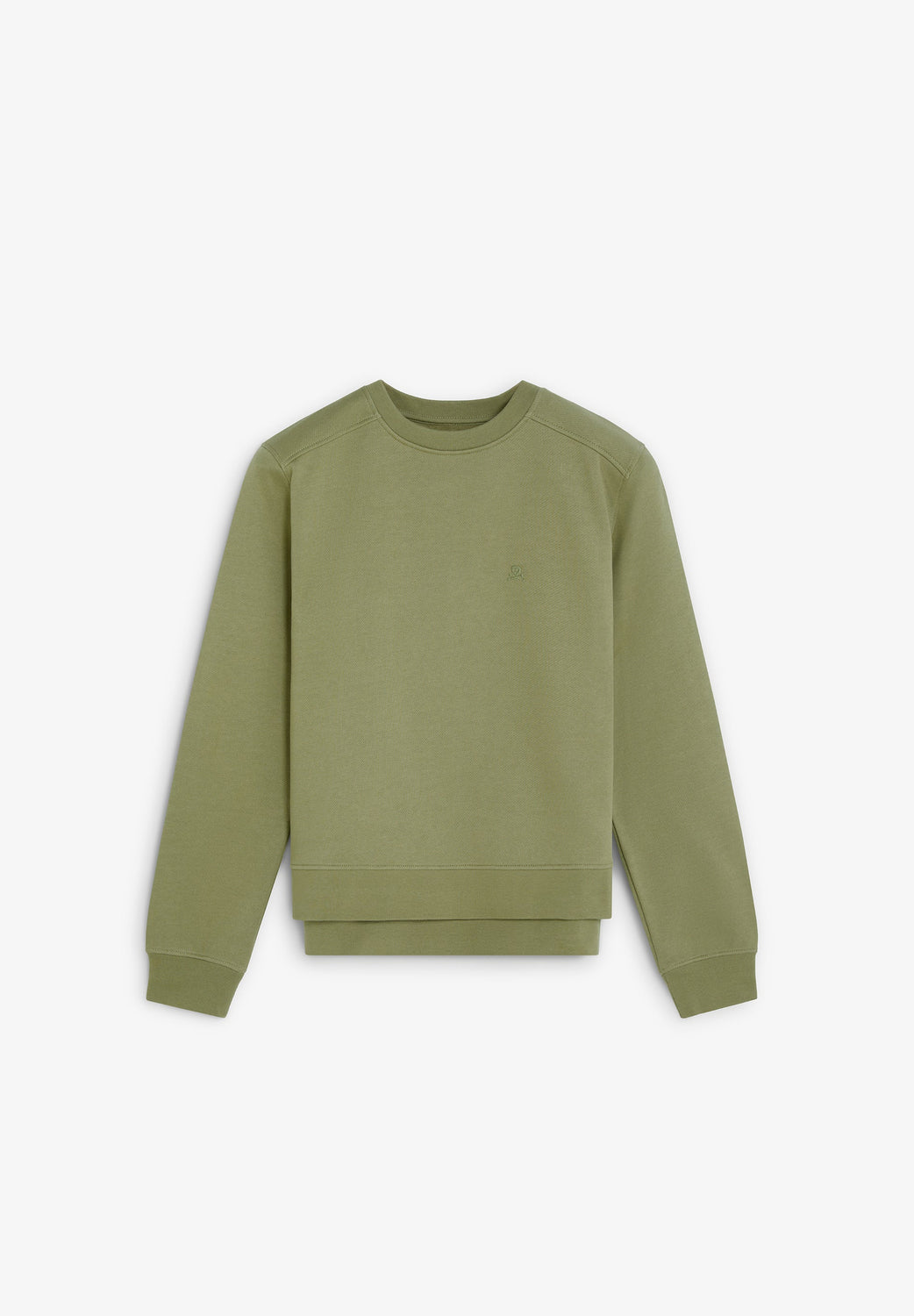Sudadera confeccionada en algodón orgánico 100%. Corte regular fit, cuello redondo y manga larga con puños acabados en rib. Bajo asimétrico, parte trasera alargada. Detalle de calavera bordada en pecho.