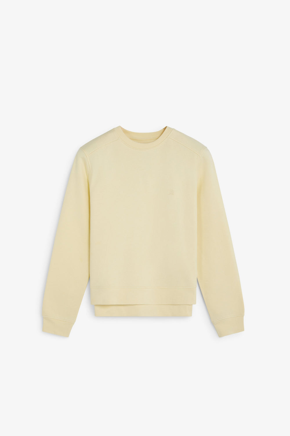 Sudadera confeccionada en algodón orgánico 100%. Corte regular fit, cuello redondo y manga larga con puños acabados en rib. Bajo asimétrico, parte trasera alargada. Detalle de calavera bordada en pecho.