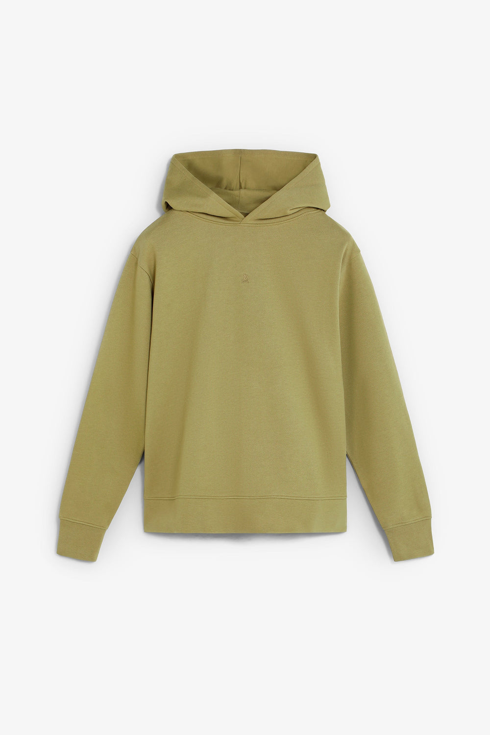 Sudadera confeccionada en algodón orgánico 100%. Corte regular fit, con capucha y manga larga con puños terminados en rib.