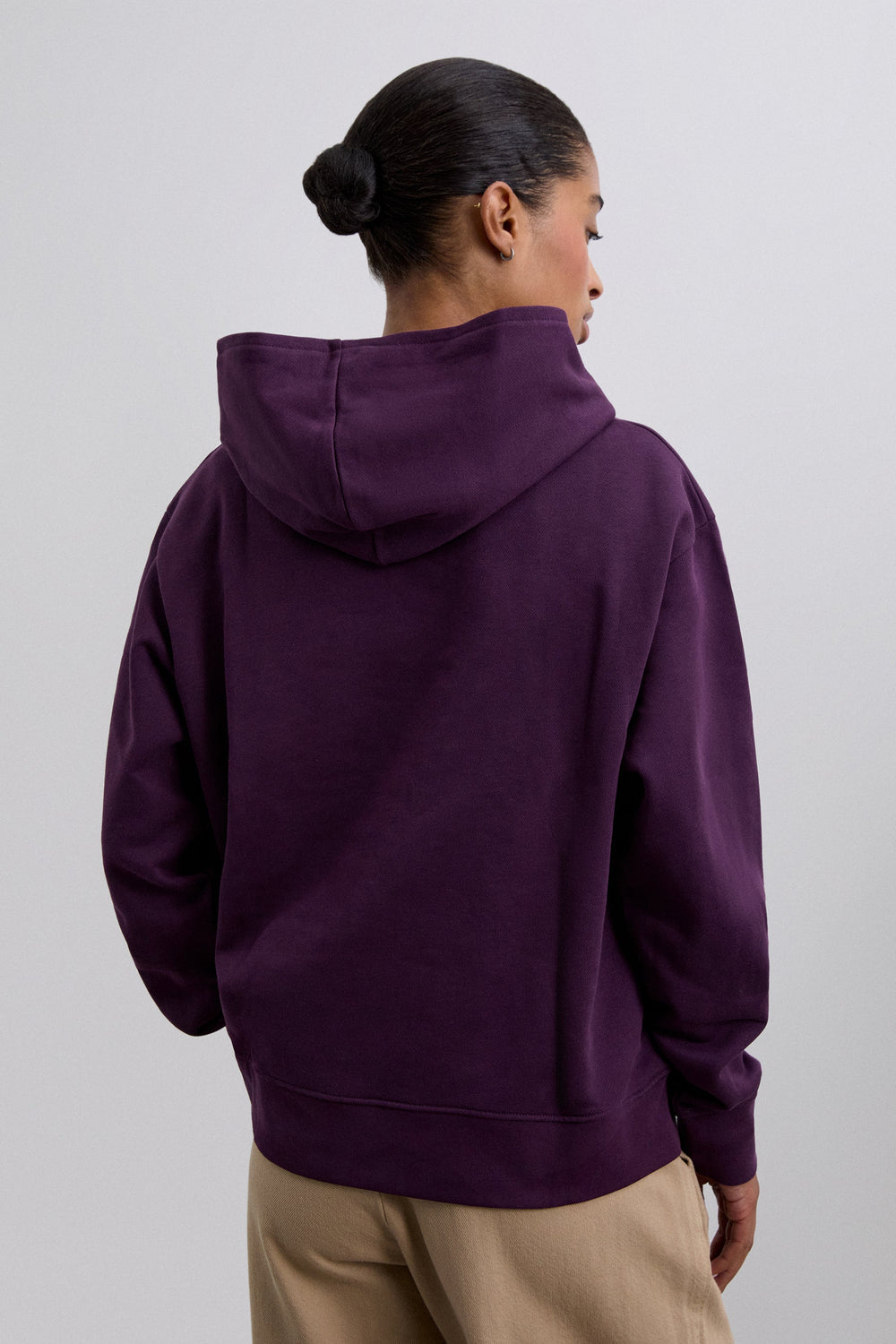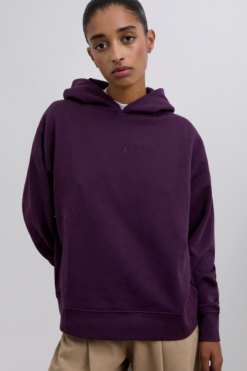 Sudadera confeccionada en algodón orgánico 100%. Corte regular fit, con capucha y manga larga con puños terminados en rib.