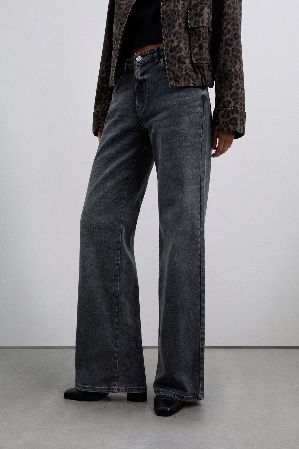 Pantalón denim confeccionado en 100% algodón ligeramente elástico. Corte regular fit, full length. Tiro medio con cierre de cremallera y botón. Trabillas en cintura. Bolsillos delanteros y traseros.