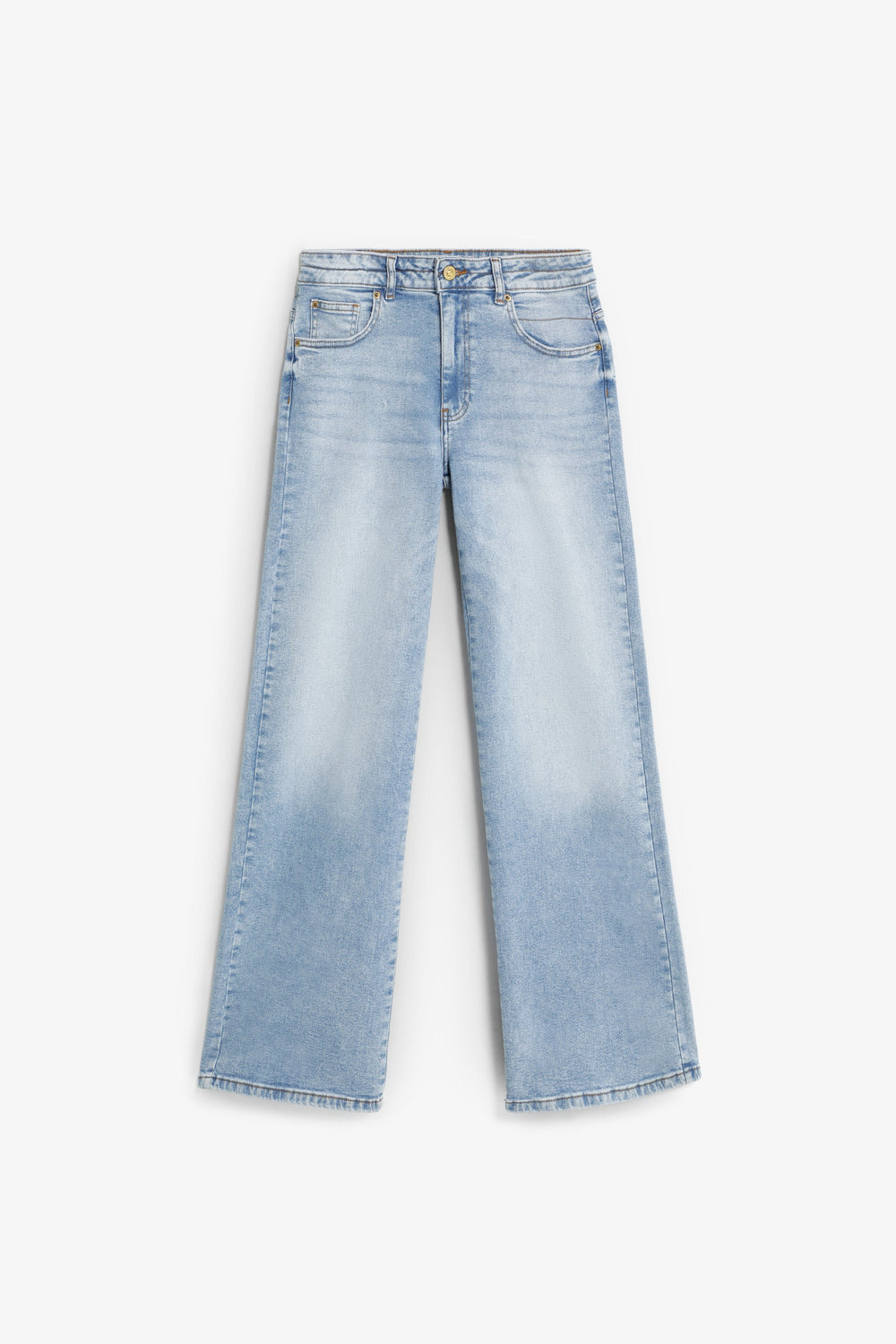 Pantalón denim confeccionado en 100% algodón ligeramente elástico. Corte regular fit, full length. Tiro medio con cierre de cremallera y botón. Trabillas en cintura. Bolsillos delanteros y traseros.