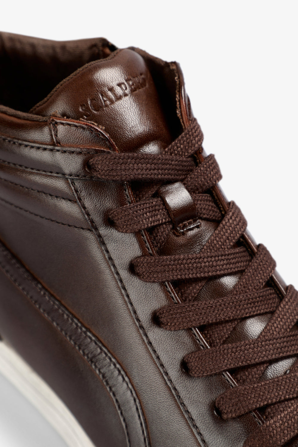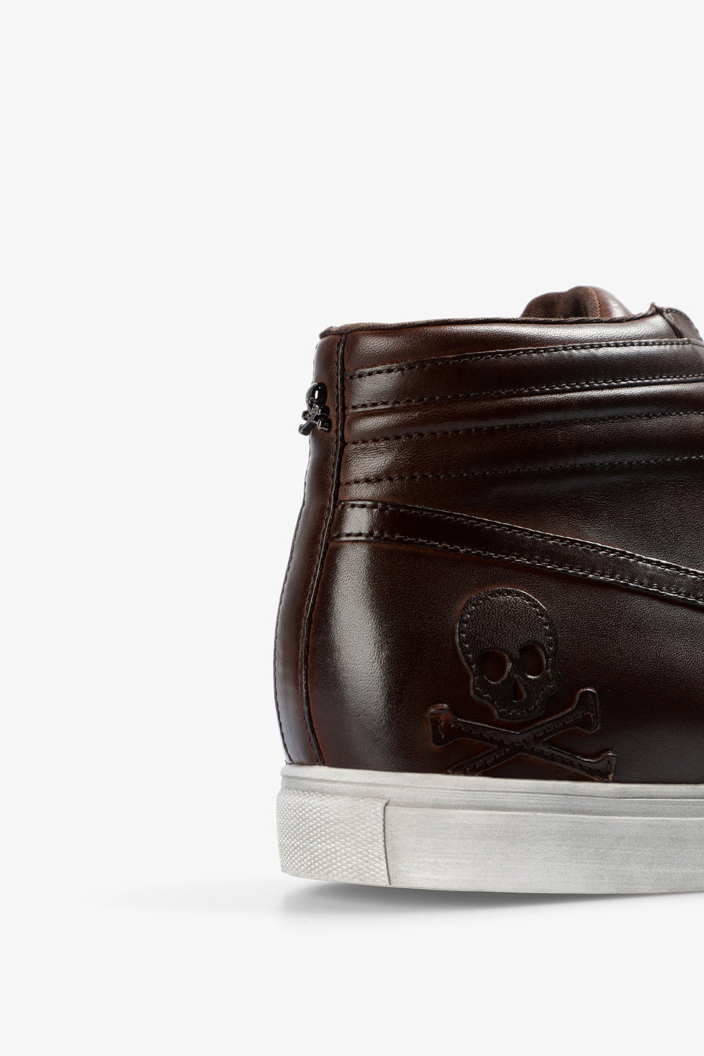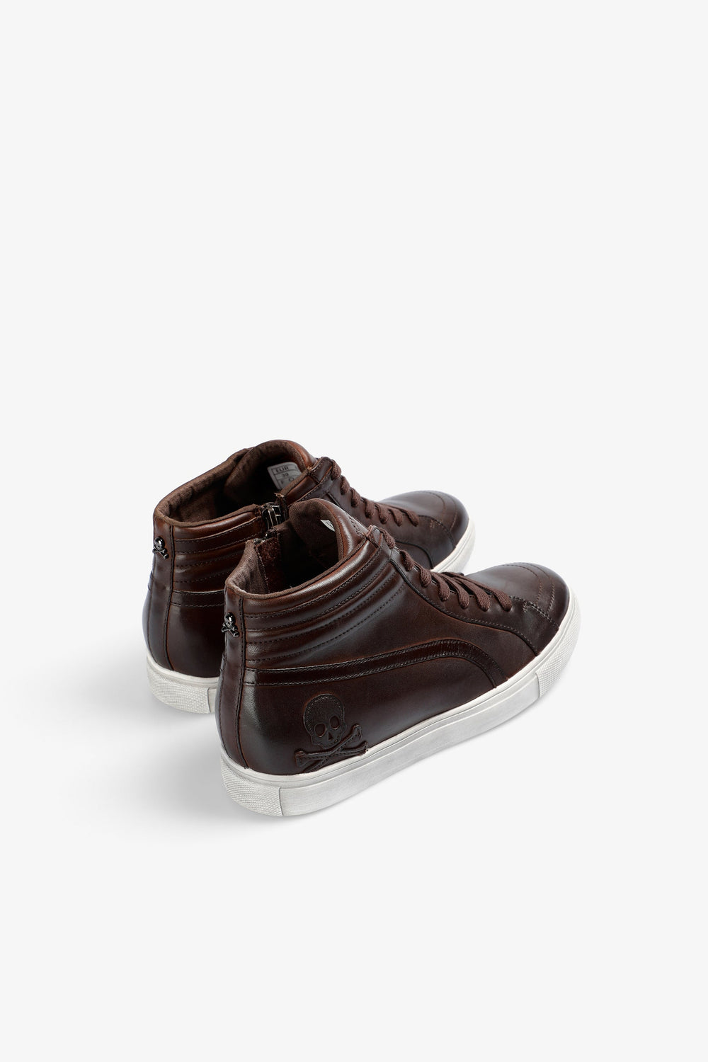 Zapatillas altas confeccionadas en 100% piel. Calavera lateral bordada a tono. Cierre mediante cordón a tono y cremallera lateral. Detalle de costuras a tono. Suela a contraste confeccionada en 100% algodón. Detalle de logo bordado a tono en lengüeta.
