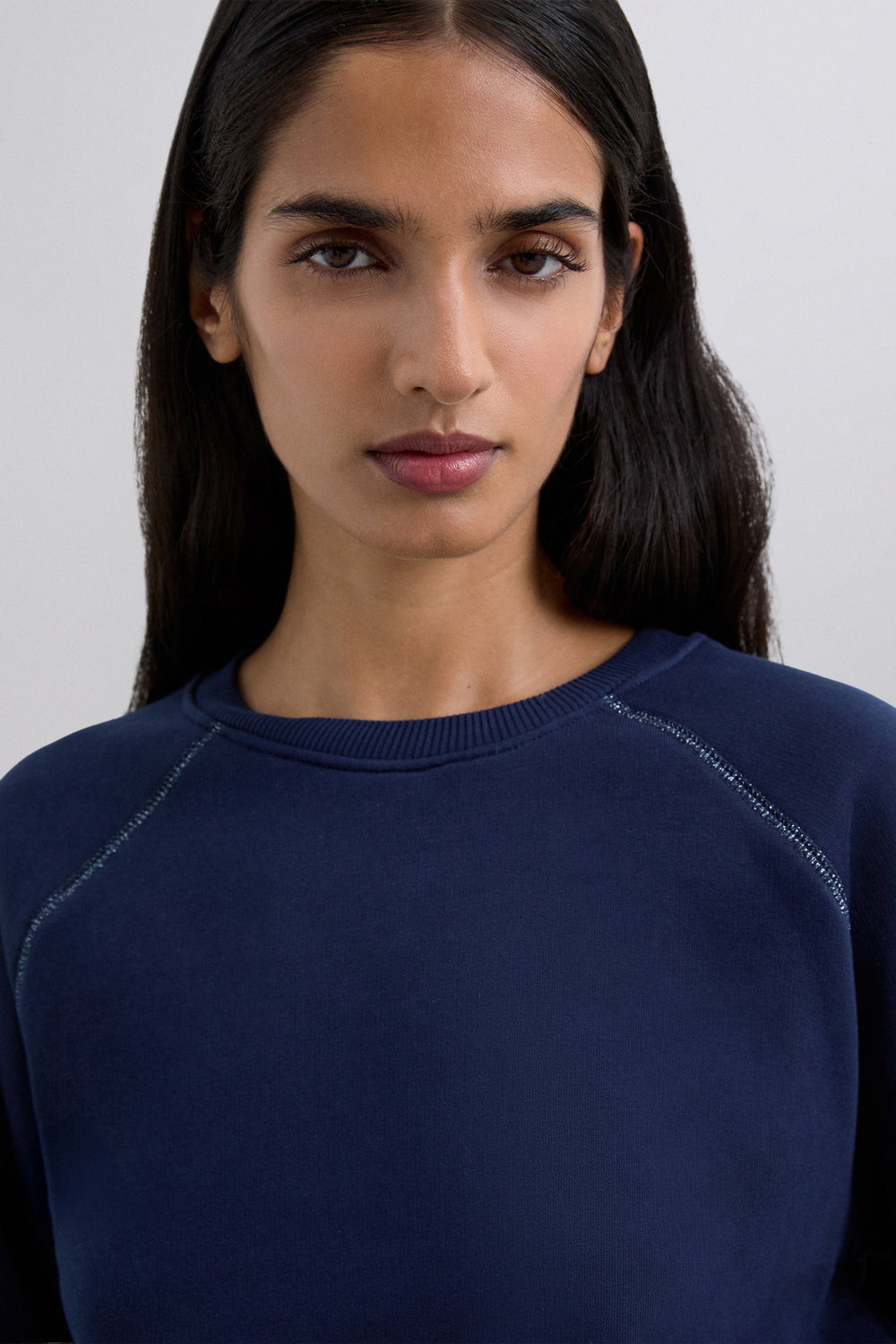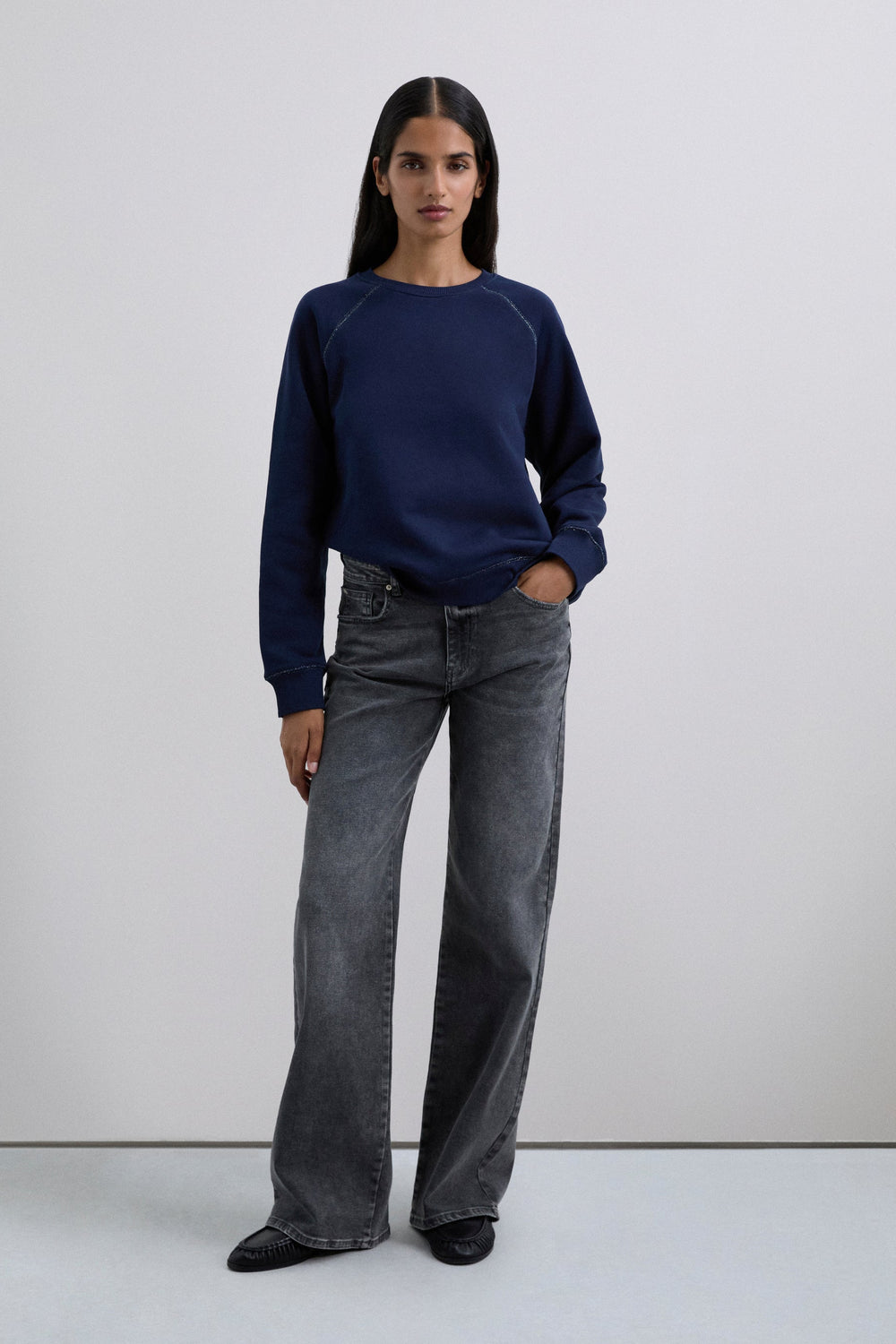 Sudadera confeccionada en 100% algodón orgánico. Corte regular fit, cuello redondo y manga larga con puños acabados en rib. Detalle de logo bordado en vertical en parte trasera.