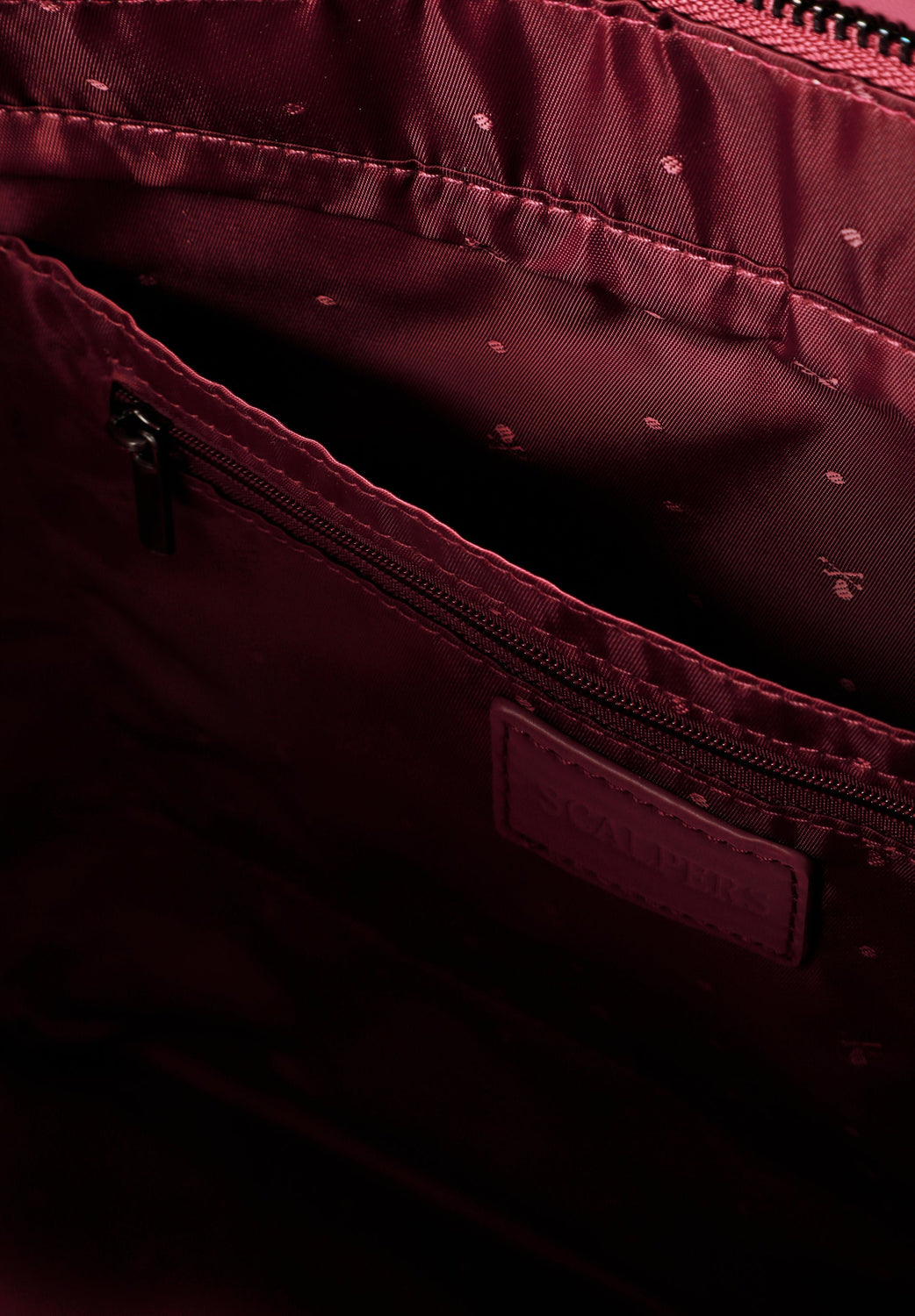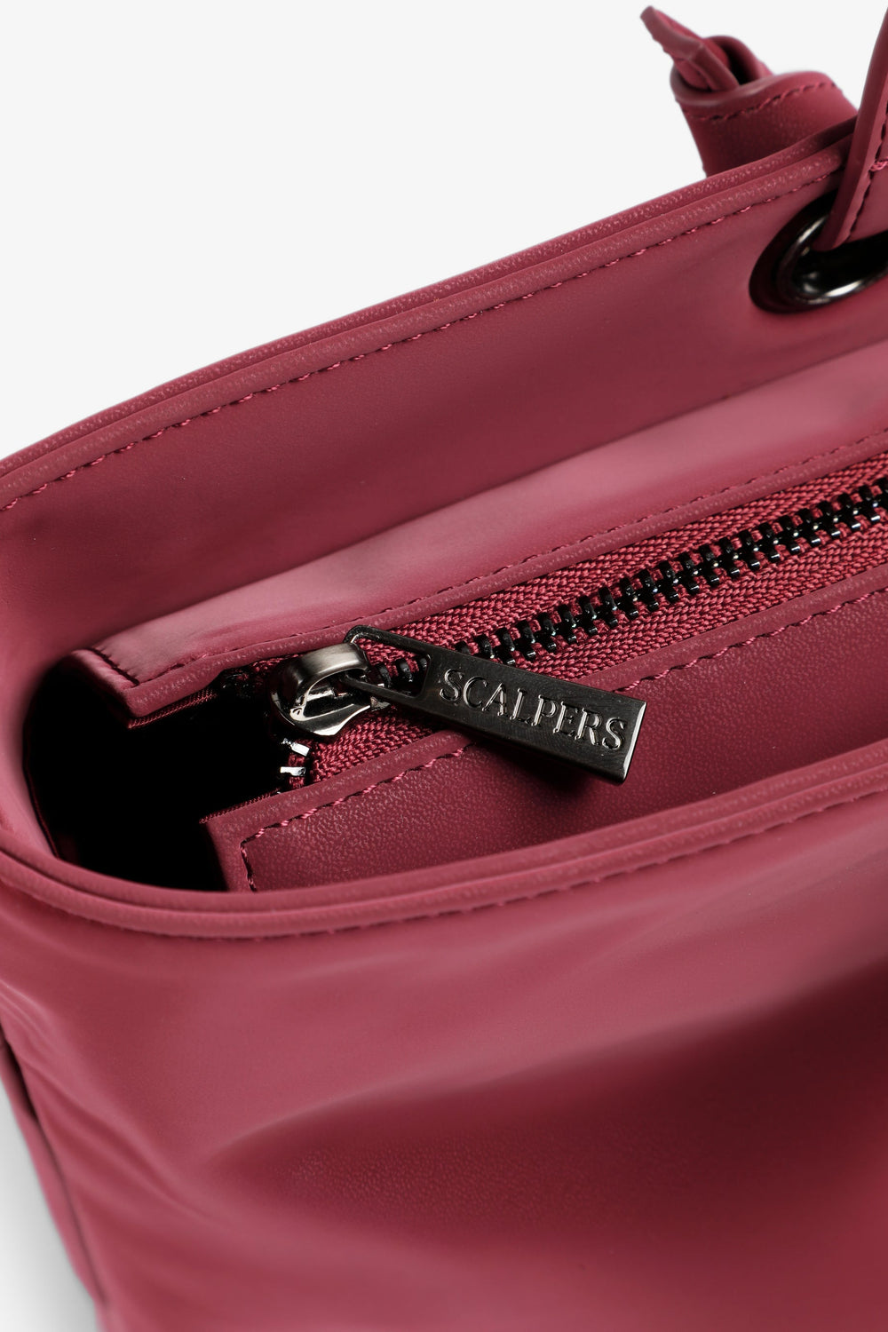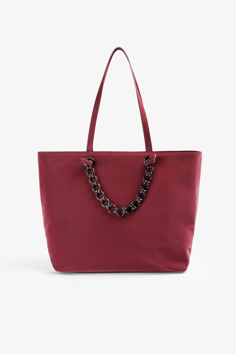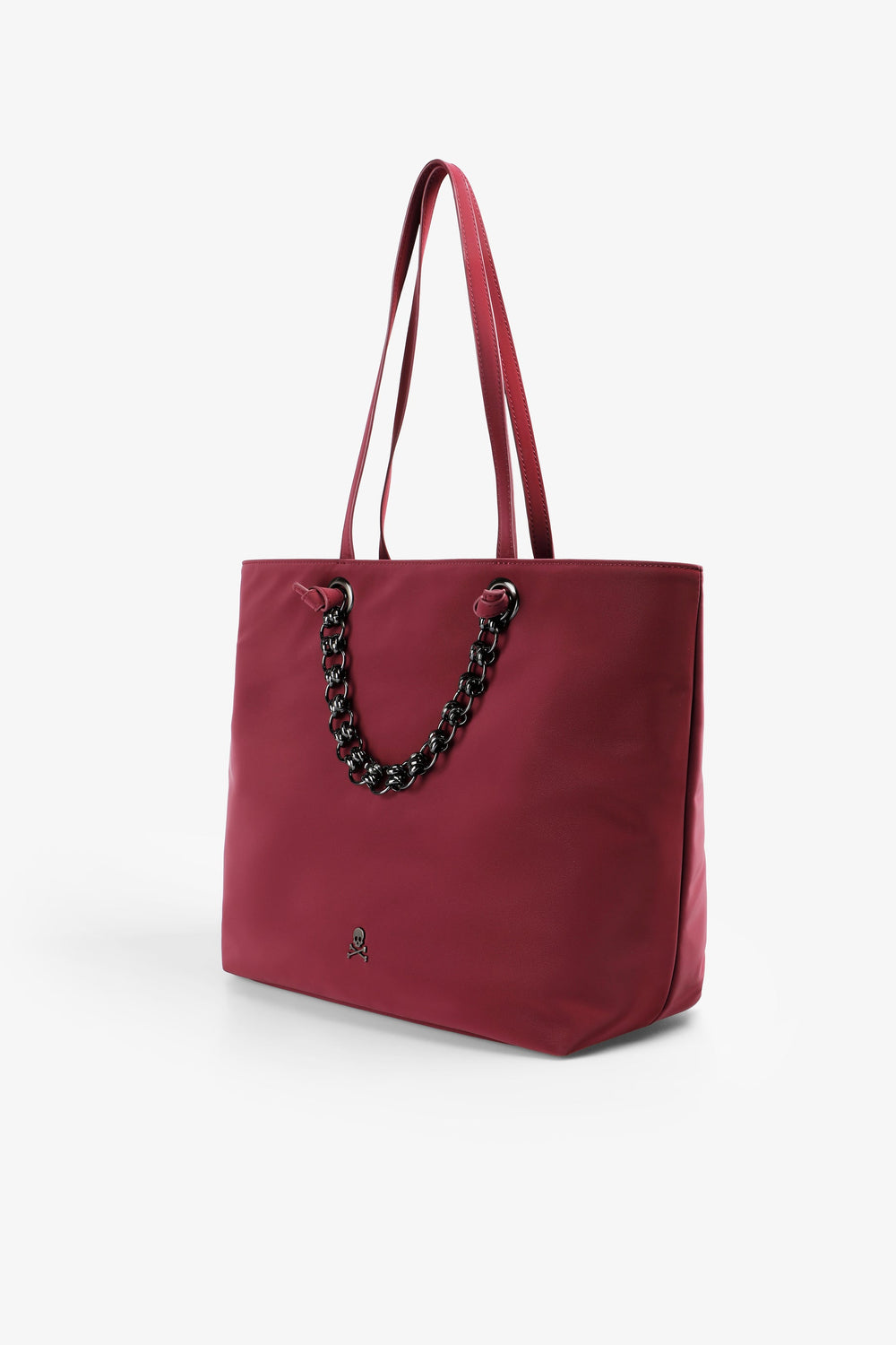 Bolso shopper confeccionado en piel sintética. Forro interior con doble bolsillo, uno con cremallera. Cierre con cremallera. Asa de hombro. Detalle de cadena y logo metalizado en la parte frontal.