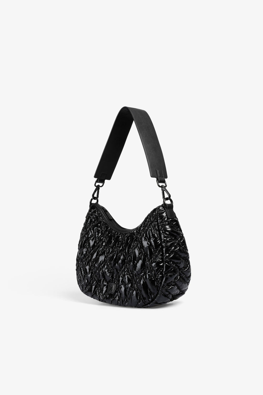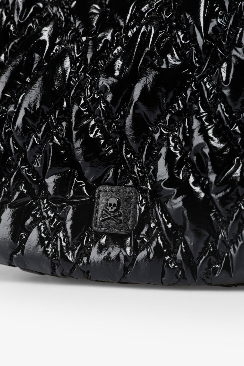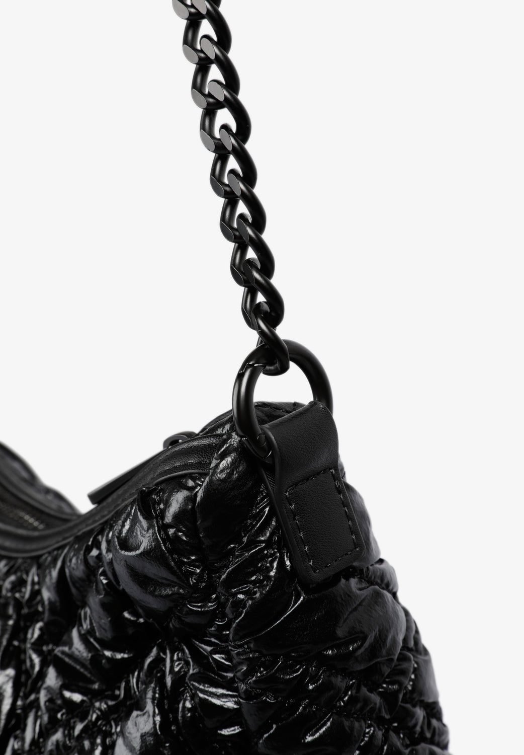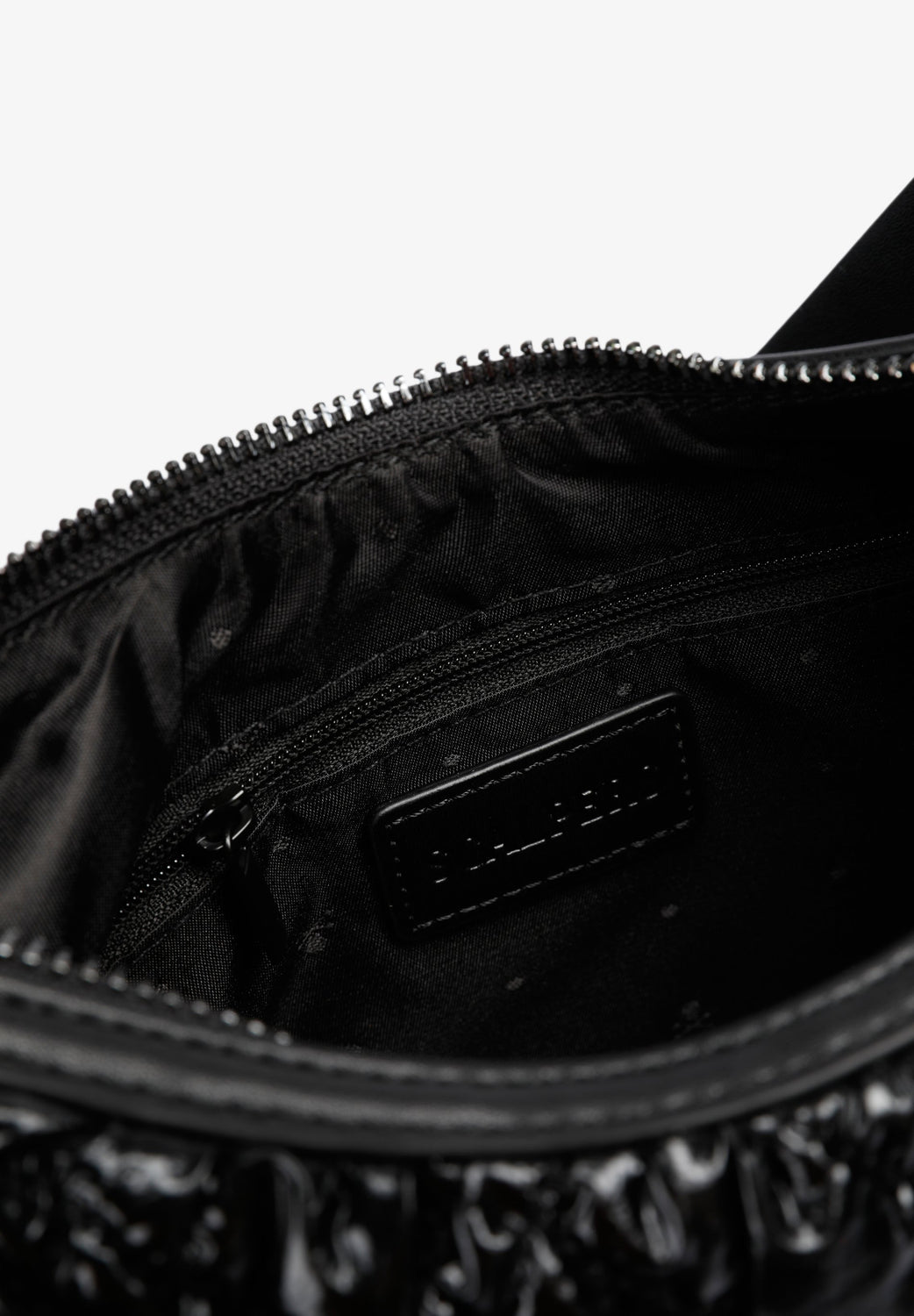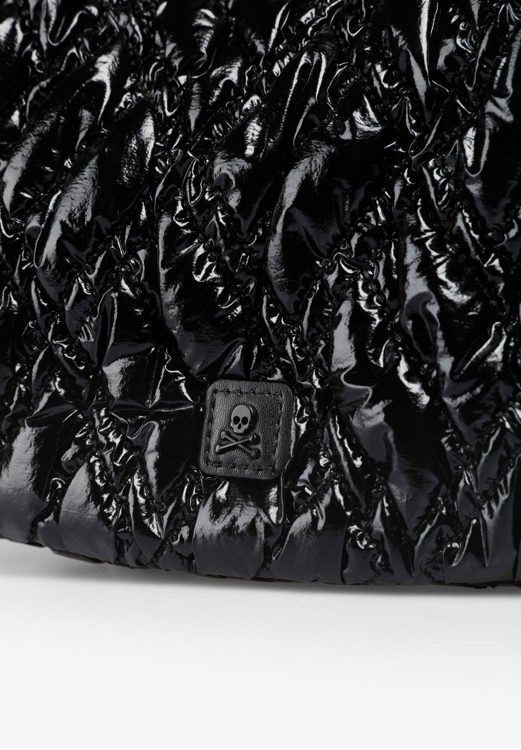 Bolso de hombro acolchado confeccionado en PU. Forro interior con cremallera y cierre mediante cremallera. Opción de doble asa, corta y de cadena. Detalle de parche con logo en frontal.