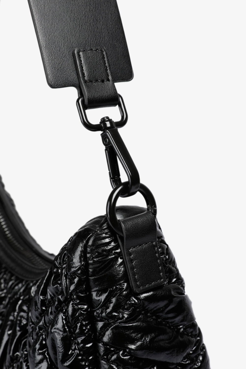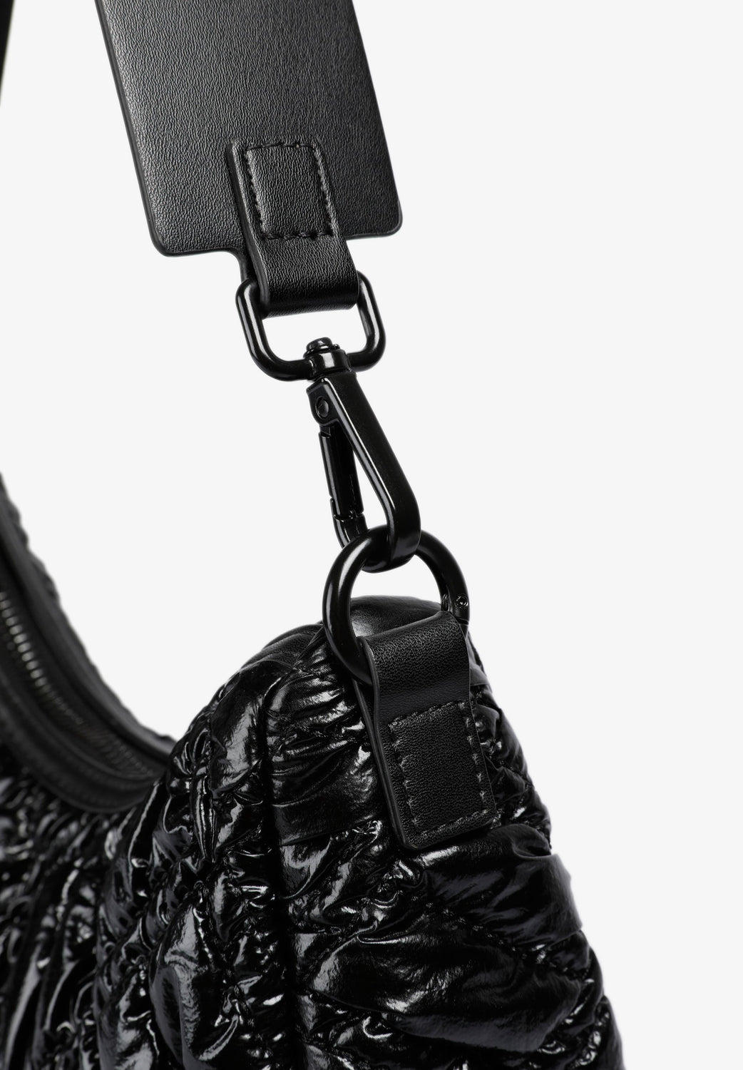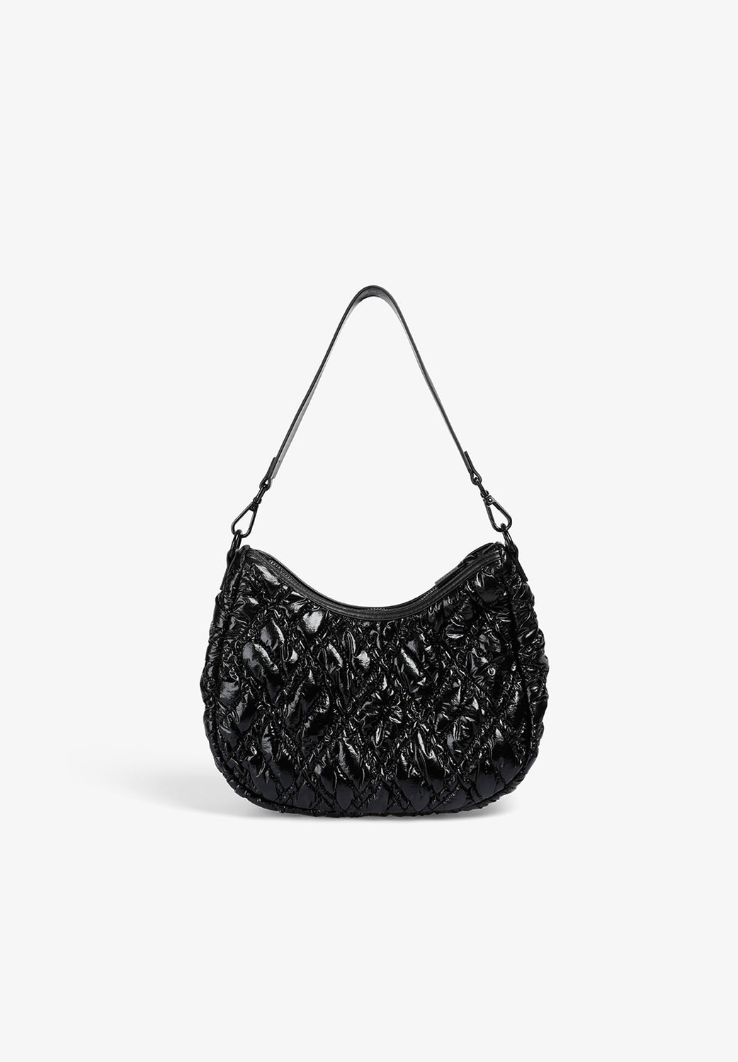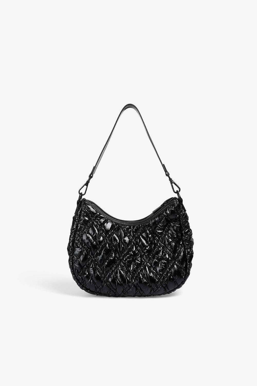 Bolso de hombro acolchado confeccionado en PU. Forro interior con cremallera y cierre mediante cremallera. Opción de doble asa, corta y de cadena. Detalle de parche con logo en frontal.