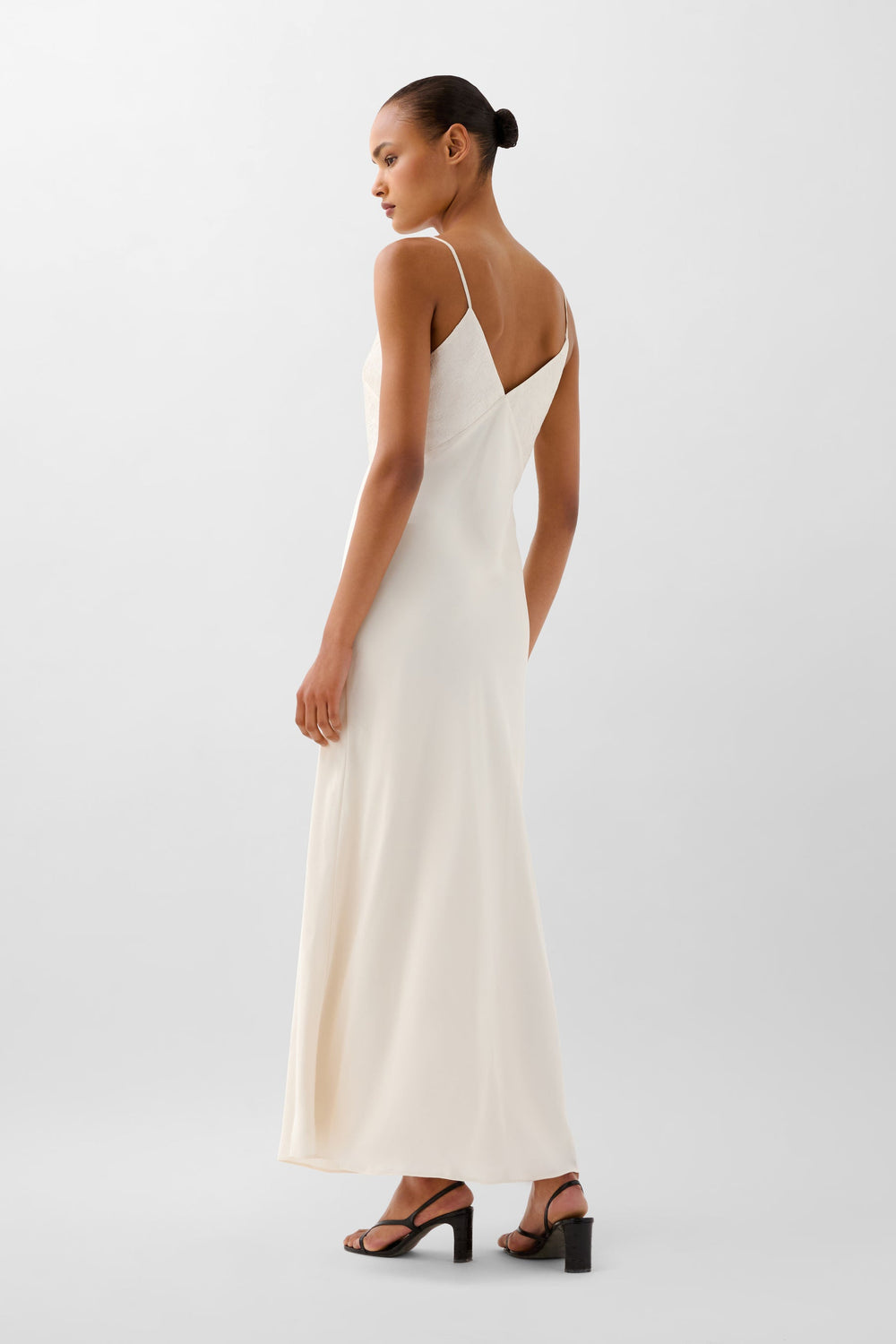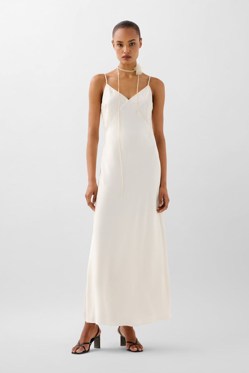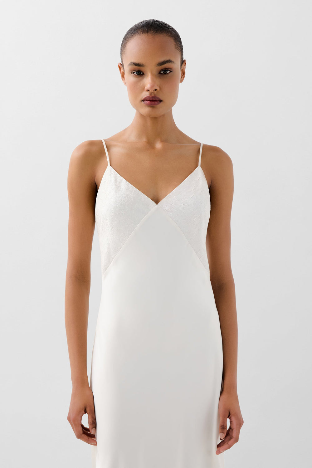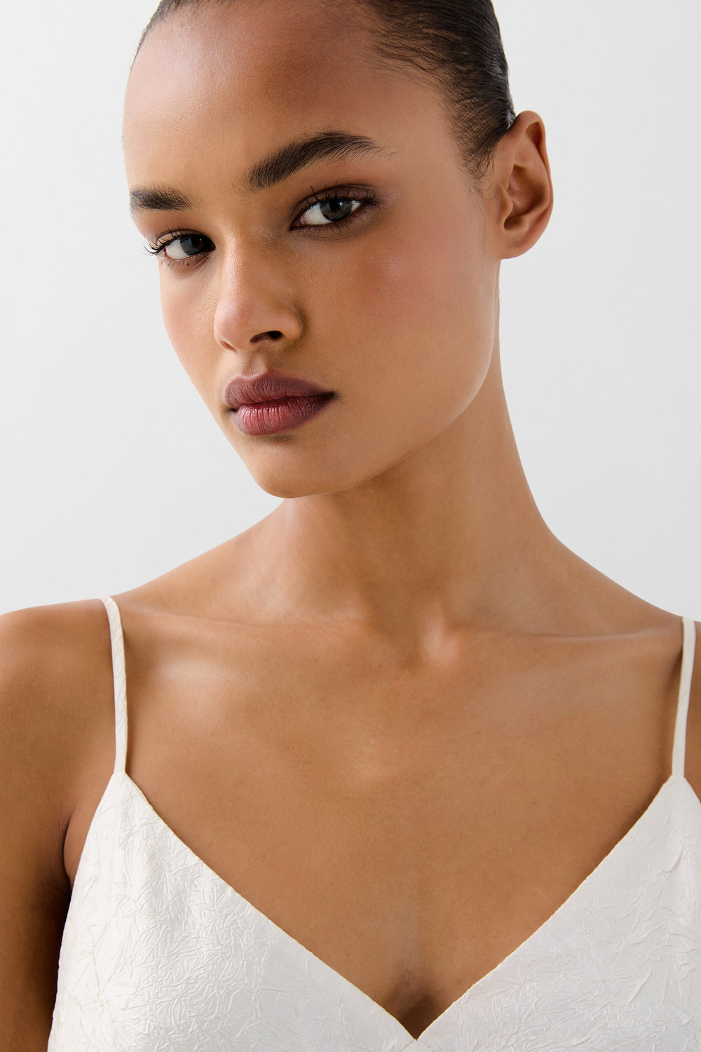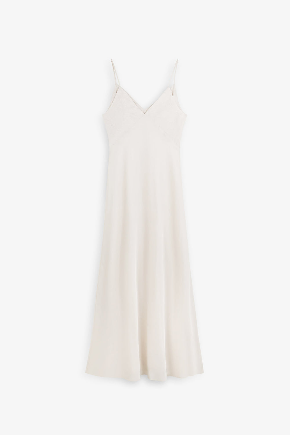 Vestido confeccionado en tejido fluido con textura . Corte slim fit, largo, con tirantes finos ajustables. escote en V.