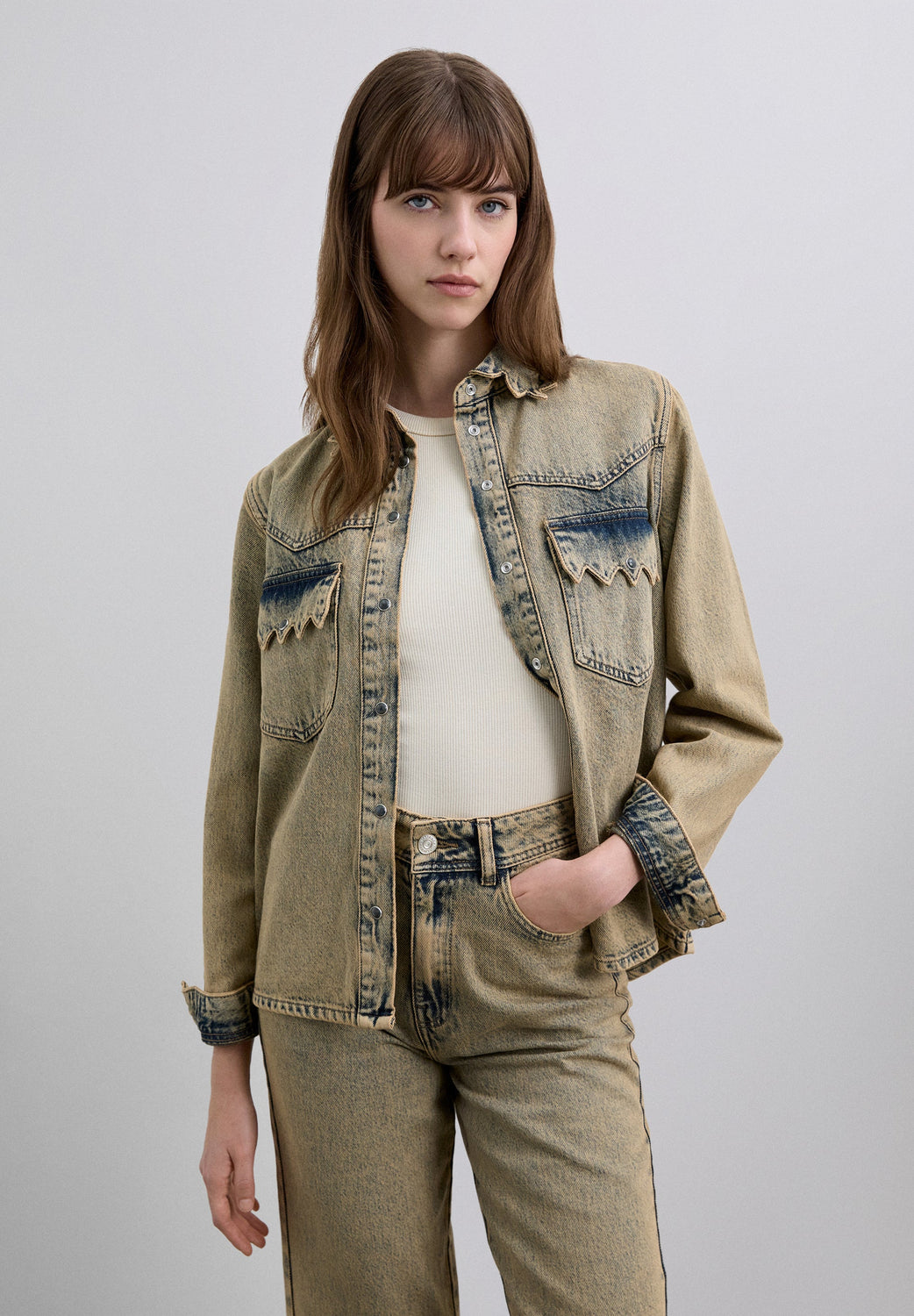 Scscallopwashed denim shirt