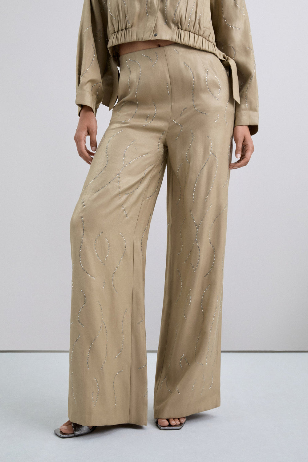PANTALÓN FLUIDO CON PIEDRAS STRASS