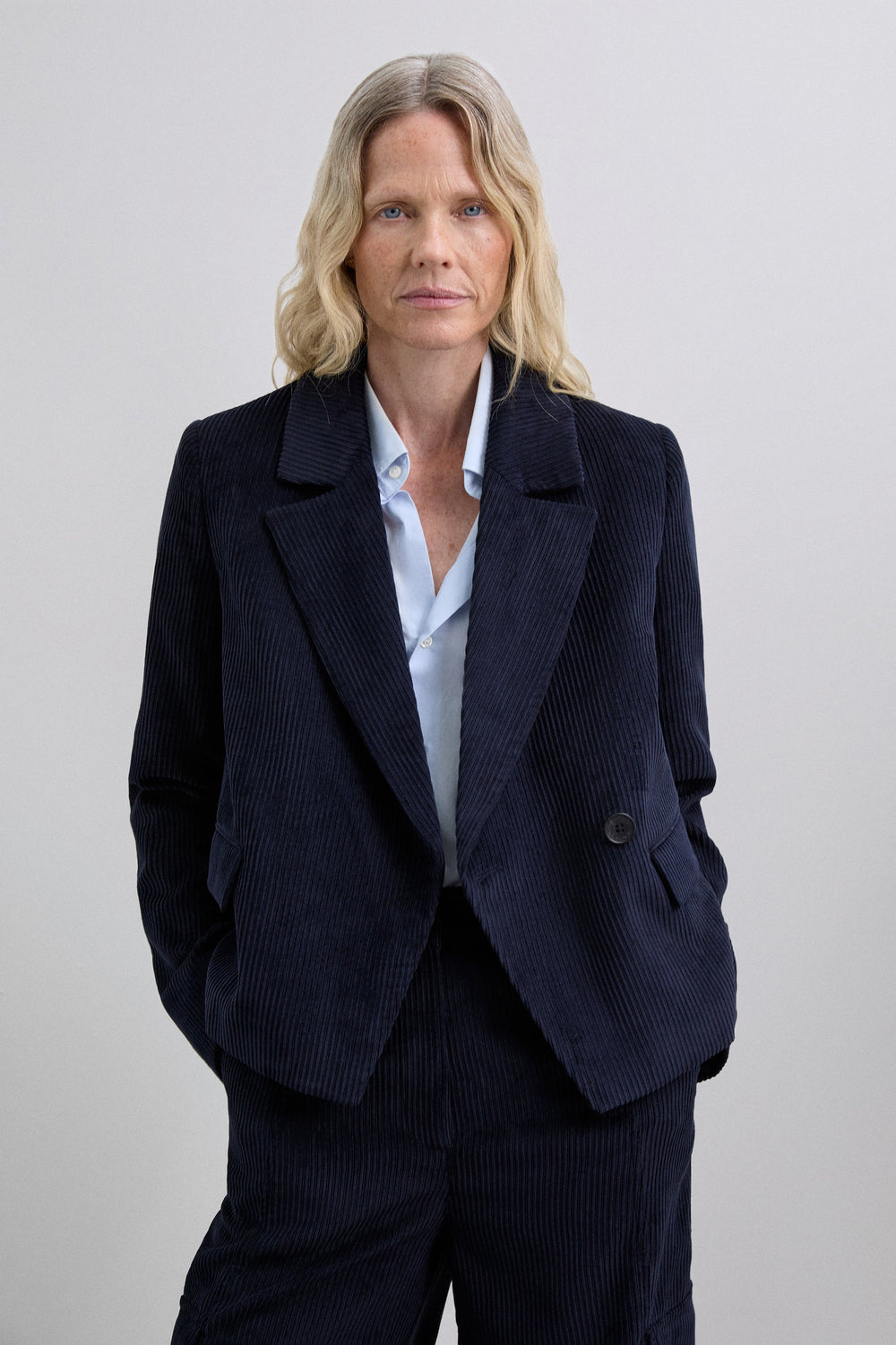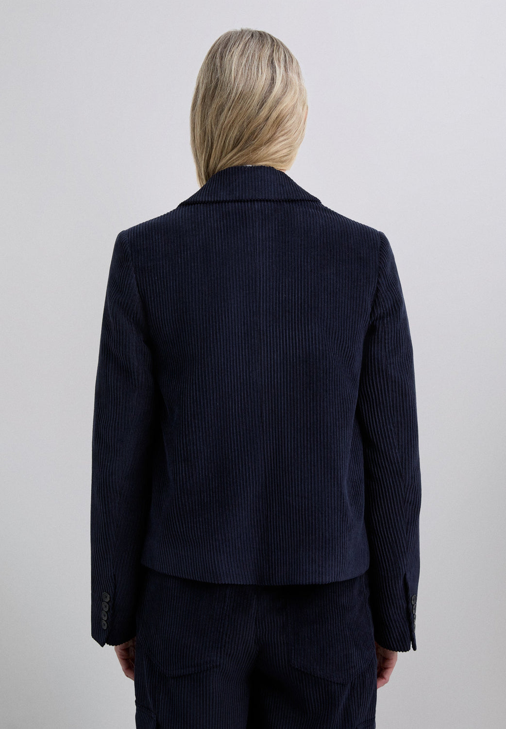 Blazer de pana con solapa muesca. Mangas largas. Cierre de botones de doble botonadura en la parte delantera. Dos bolsillos frontales de solapa. Cierre en puños mediante botonadura.