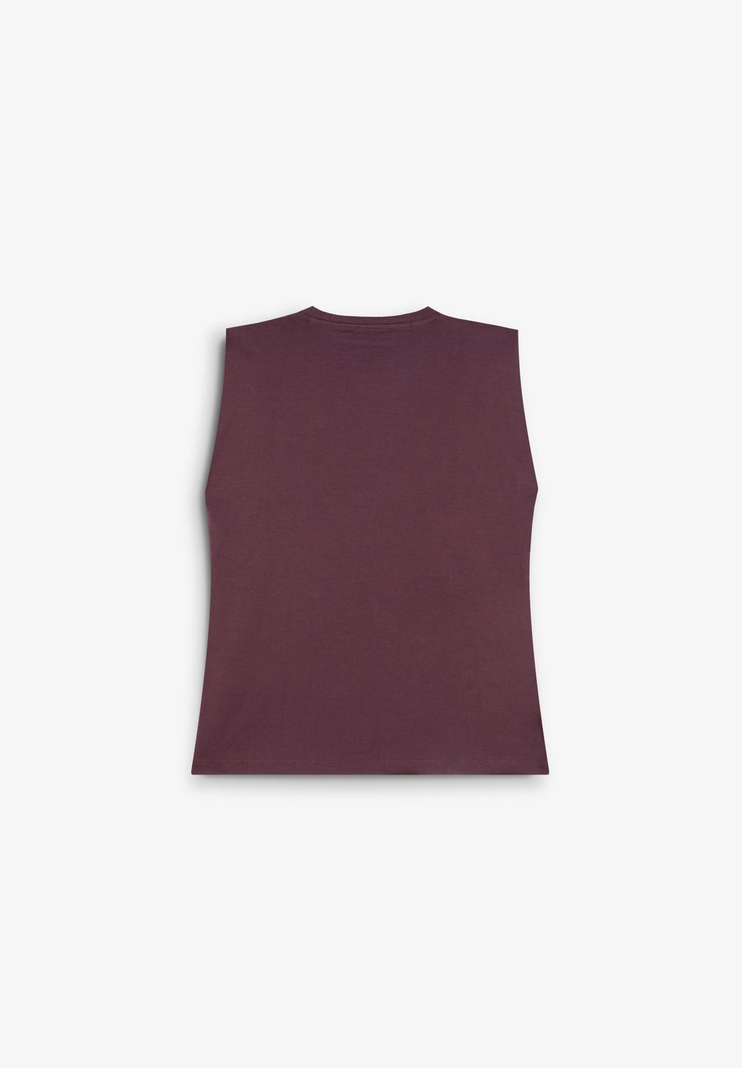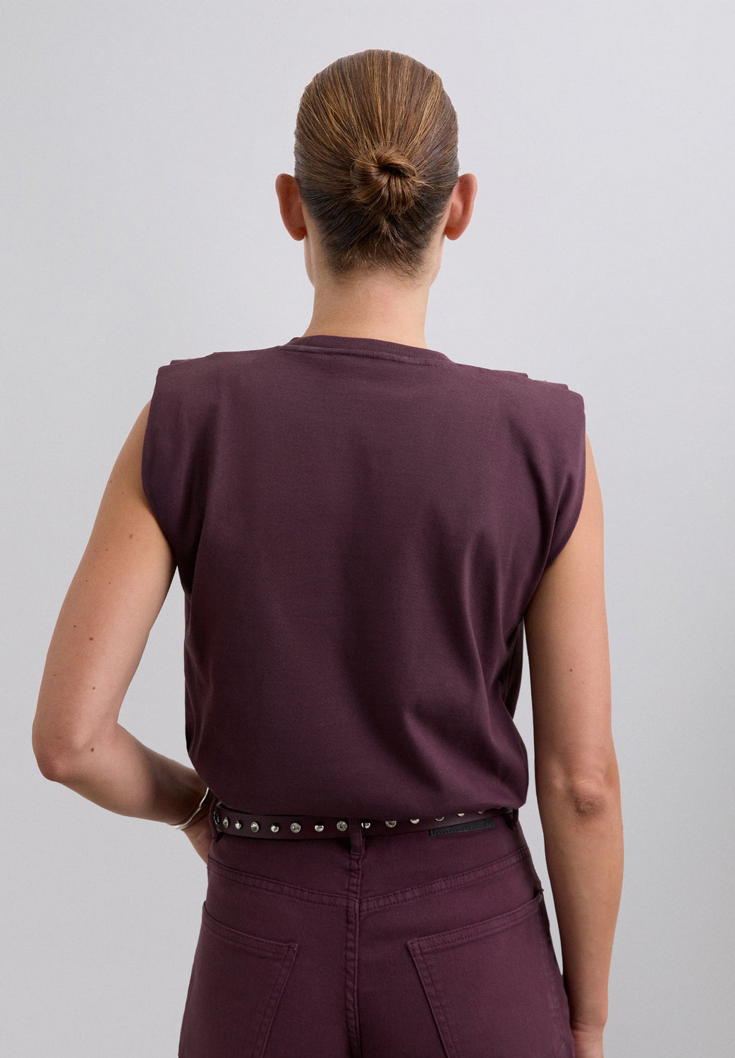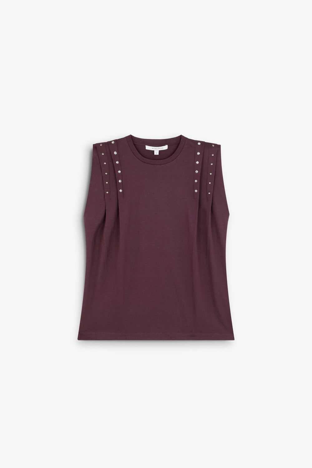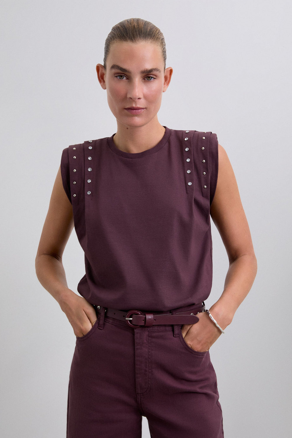 Camiseta confeccionada en 100% algodón BCI. Regular Fit. Cuello redondo y manga sisa. Detalle de tachuelas en hombros.