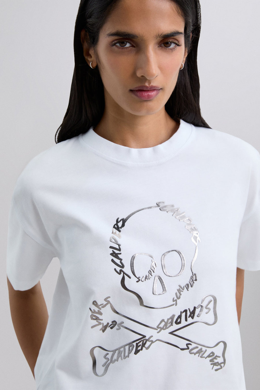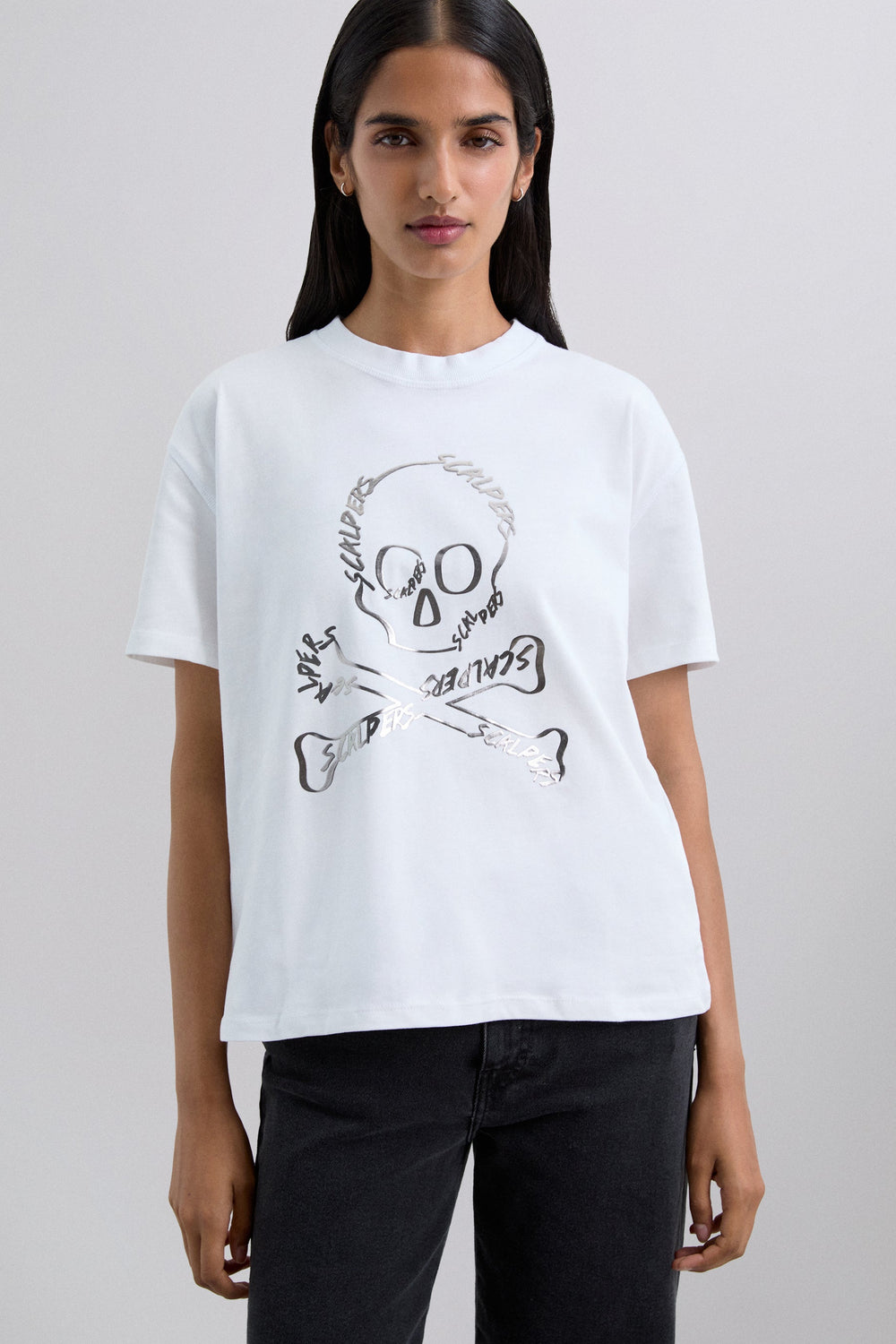 Camiseta confeccionada en 100% algodón. Regular fit. Print frontal con calavera. Cuello redondo. Manga corta. Detalle de costuras en espalda.