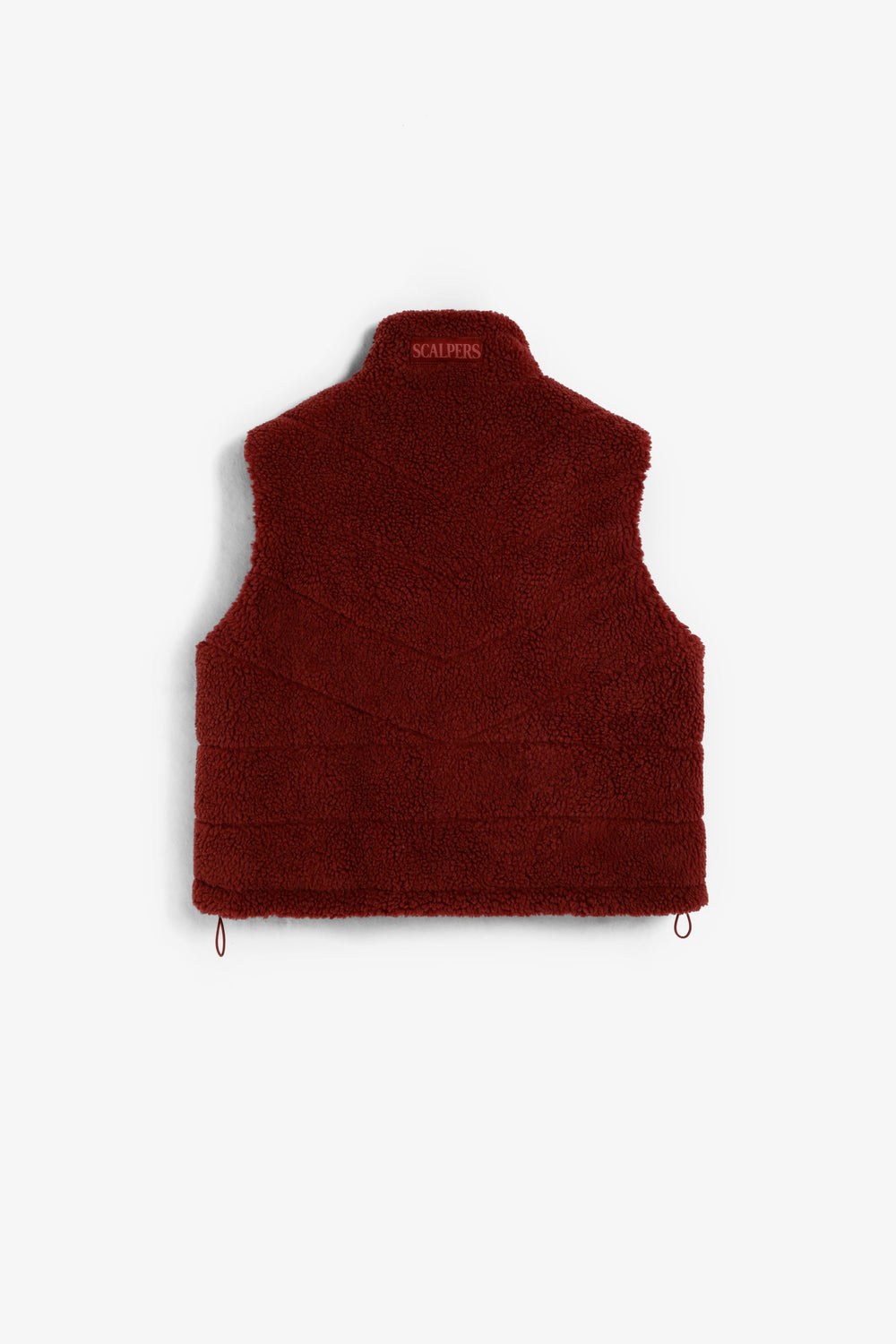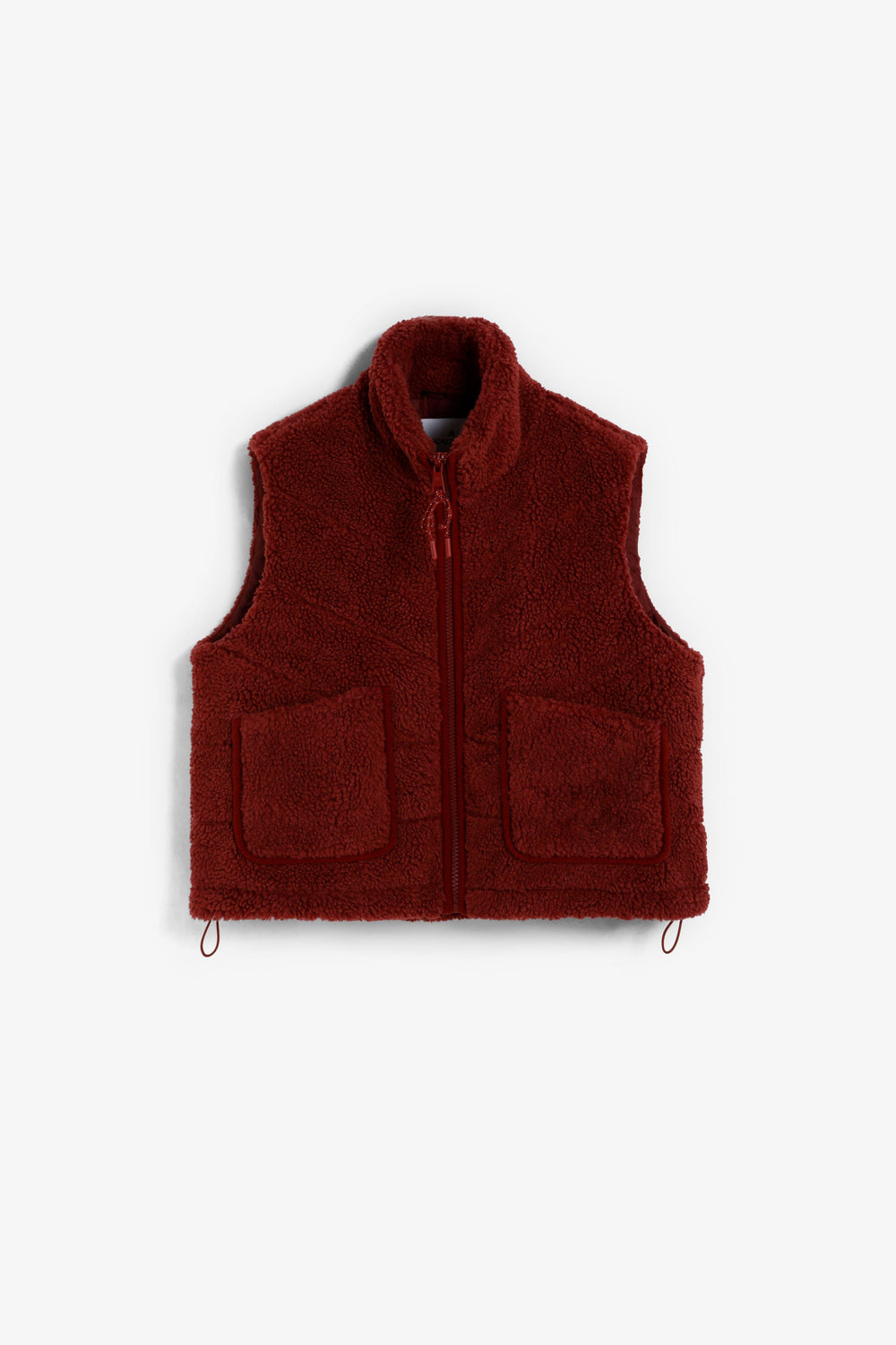Chaleco de forro polar recortado. Ajuste entallado. Dos bolsillos frontales. Dobladillo ajustable con cordón. Cuello alto. Cierre frontal con cremallera.