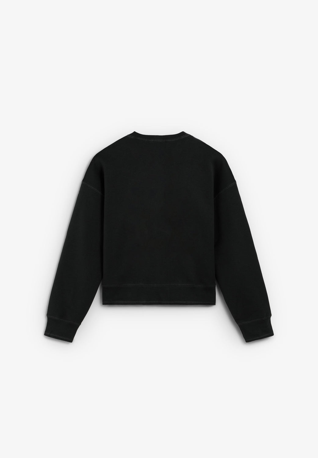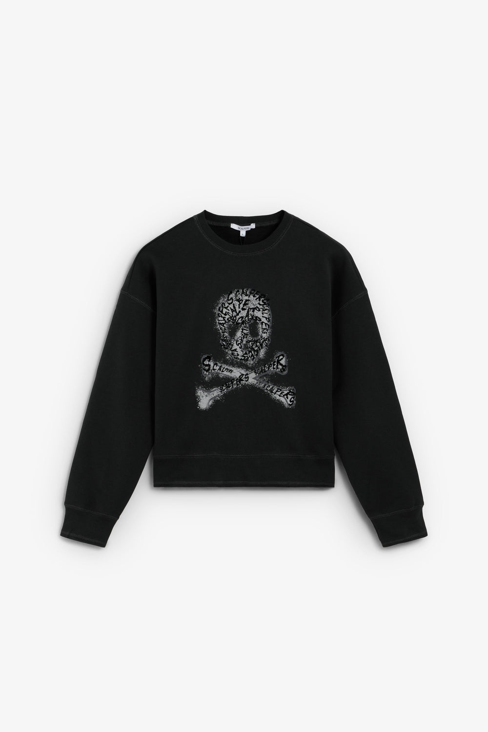 Sudadera confeccionada en 100% algodón orgánico. Corte regular fit, cuello redondo y manga larga con puños acabados en rib. Detalles de calavera con print flock en frontal.