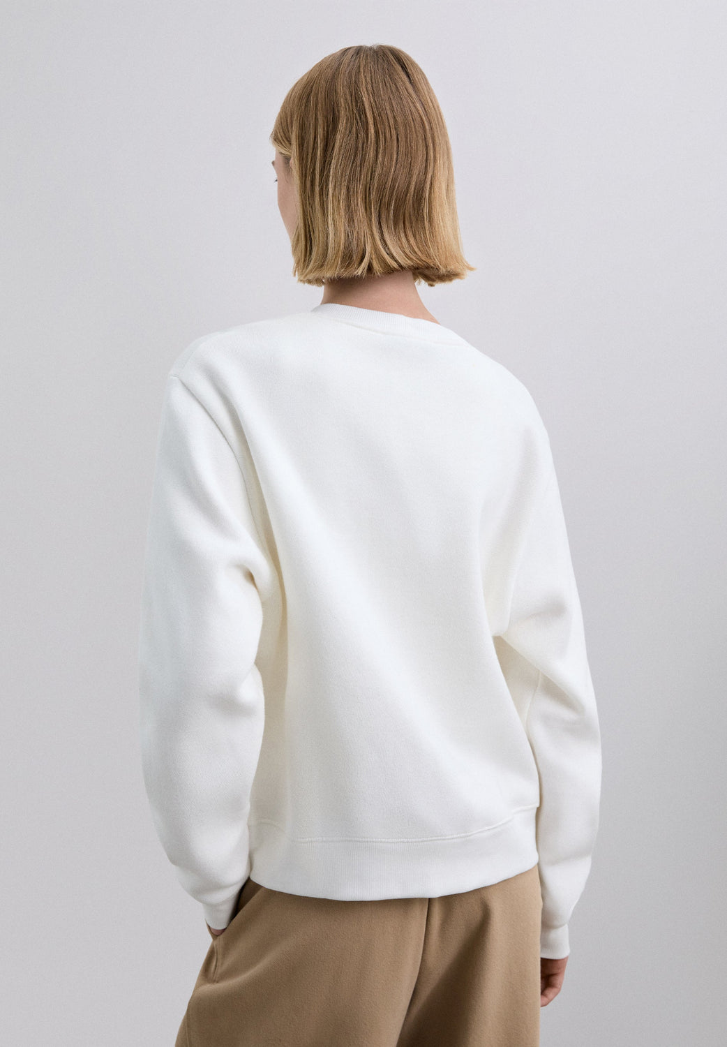 Sudadera confeccionada en 100% algodón orgánico. Corte regular fit, cuello redondo y manga larga con puños acabados en rib. Detalles de logo bordado a contraste en frontal.