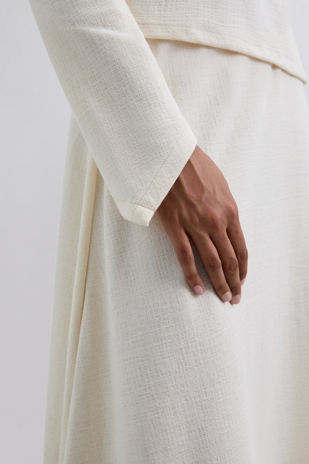 Falda midi de punto grueso confeccionado en 100% algodón. Regular fit, cinturilla elástica y costuras marcadas. Bajo asimétrico.