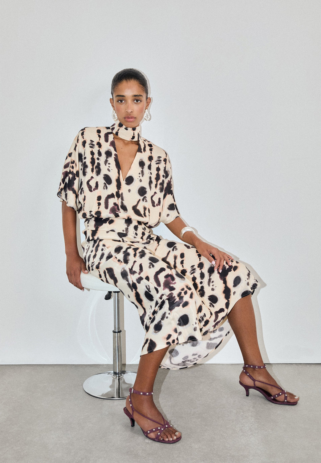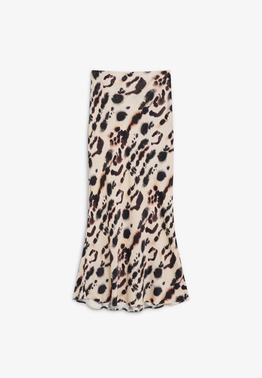 Falda midi confeccionada en 100% viscosa. Tejido fluido estampado.