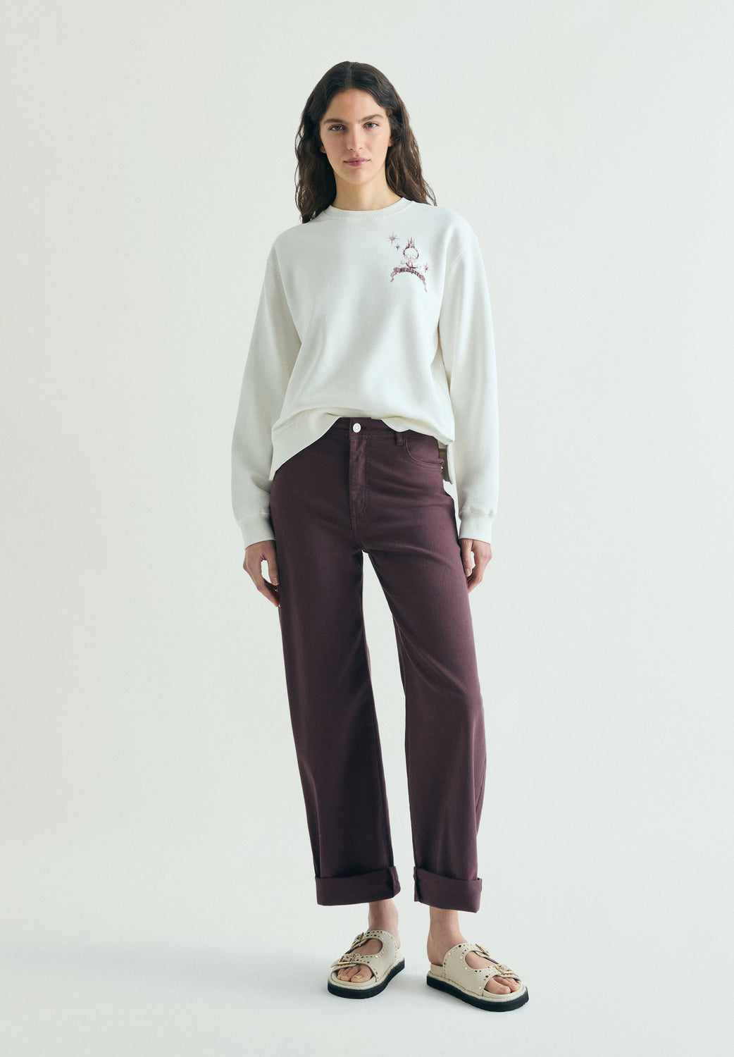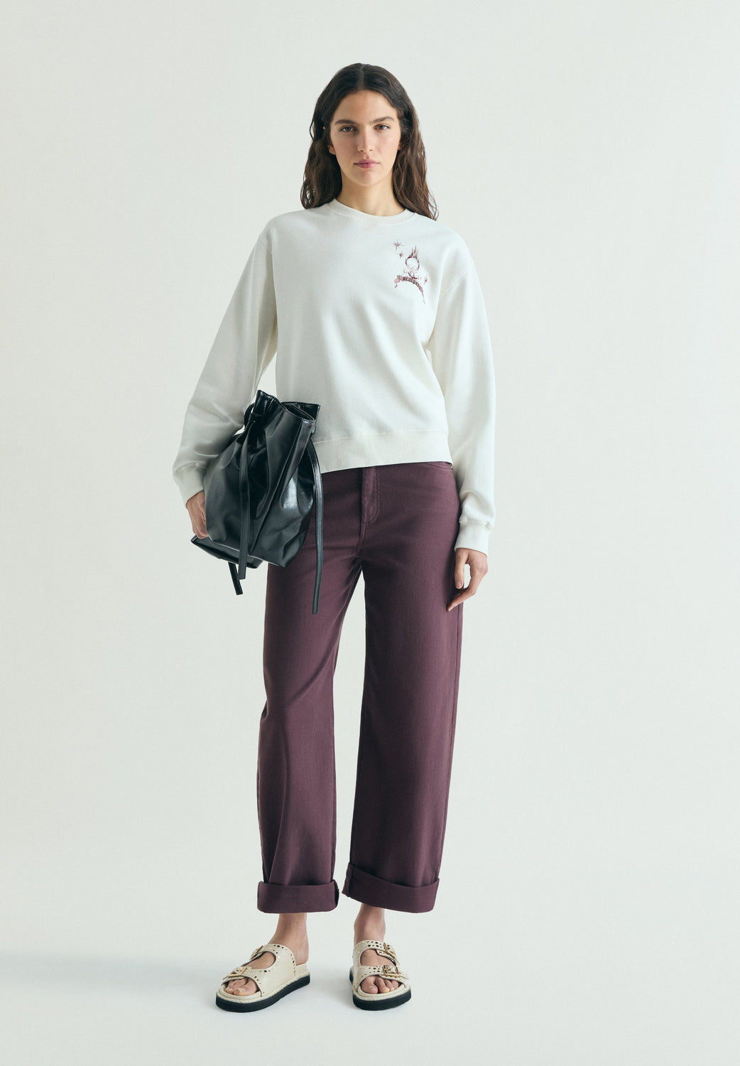 Sudadera confeccionada en algodón 100%. Detalle de print en parte delantera. Mangas y bajo en rib.