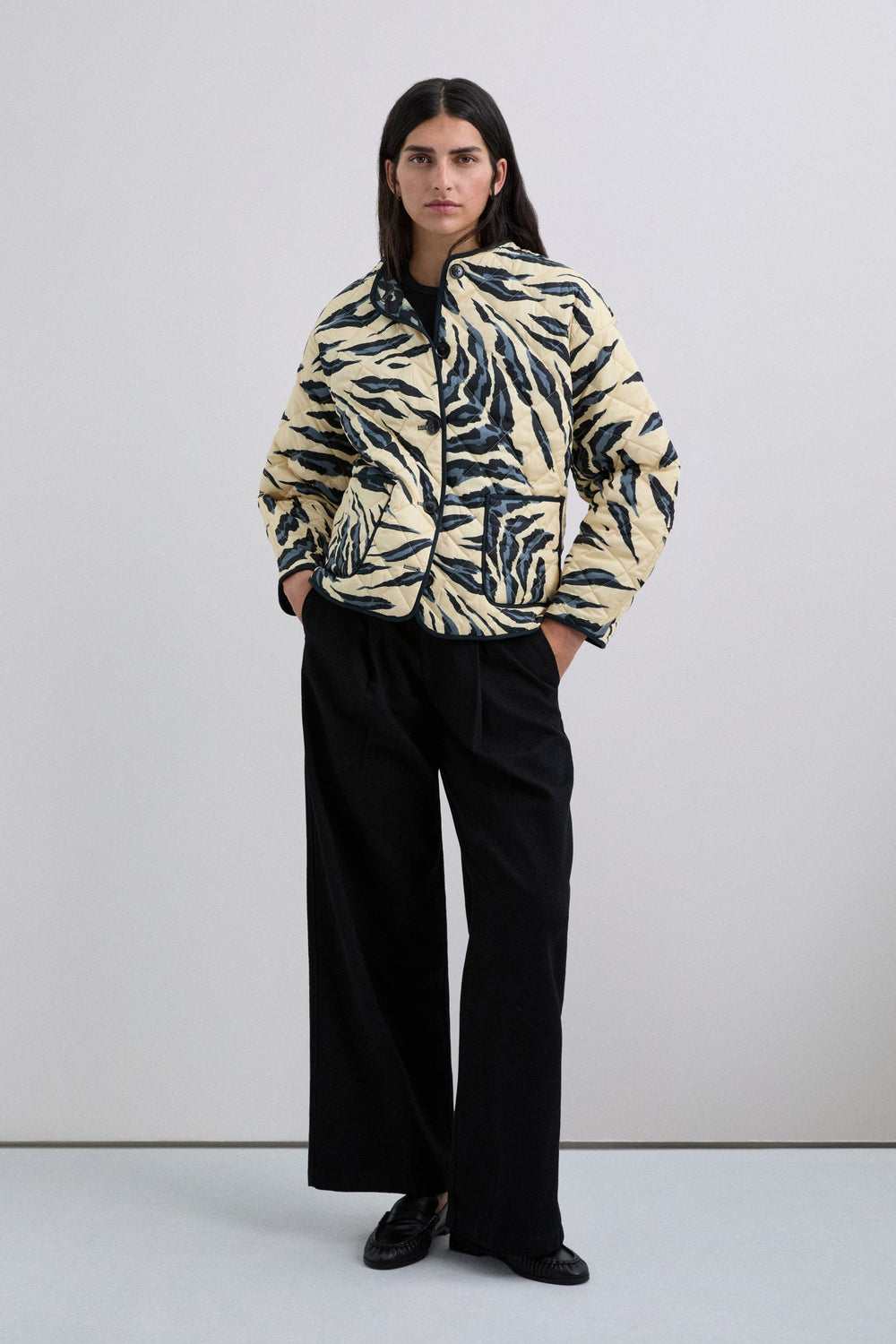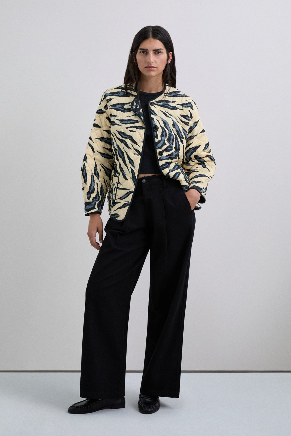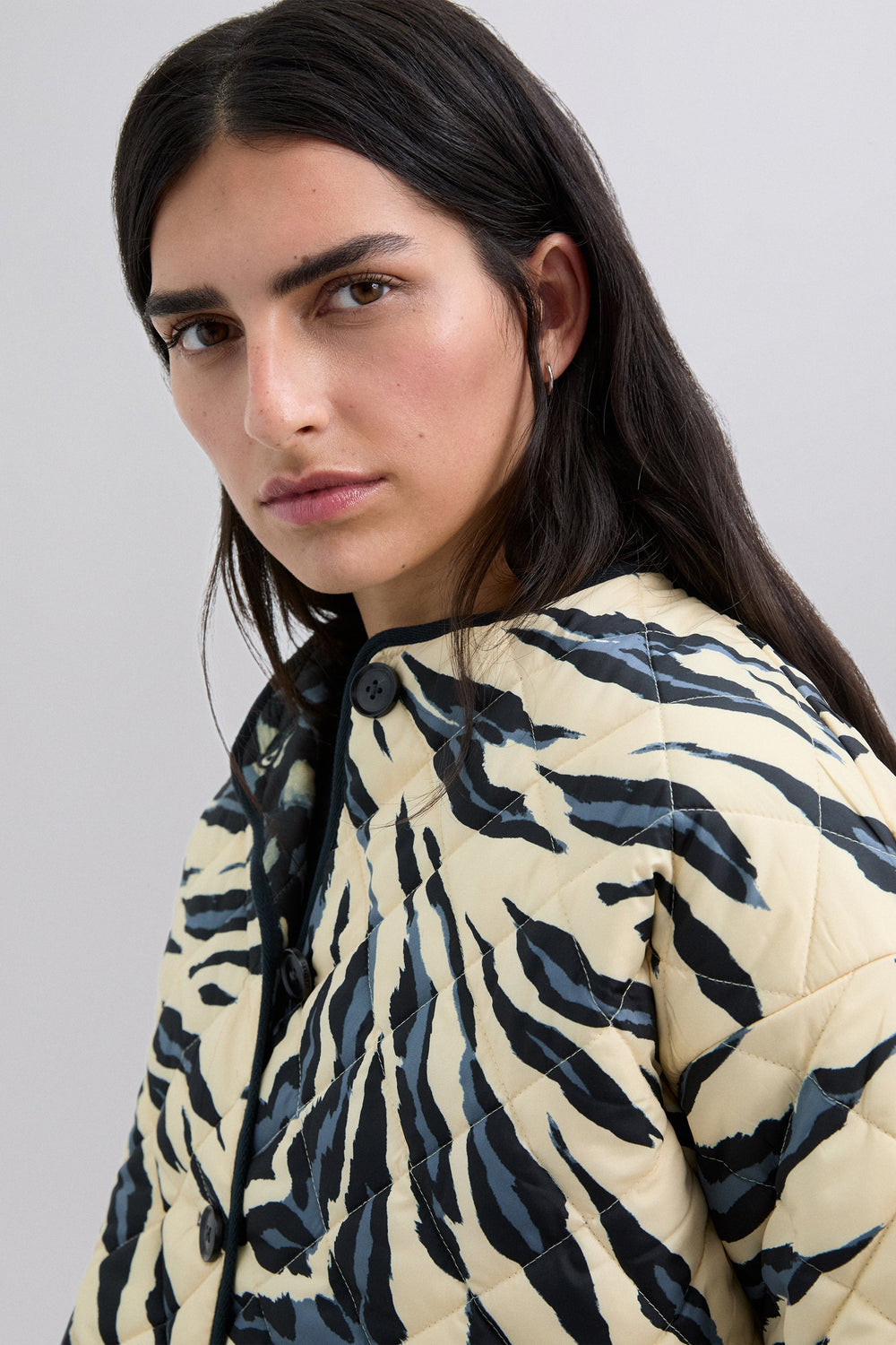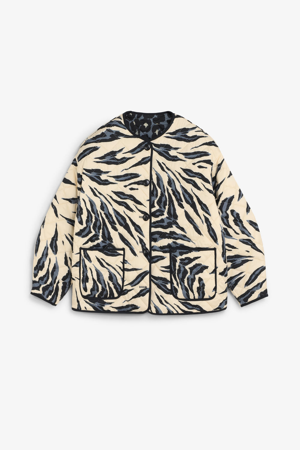 Chaqueta acolchada reversible. Relaxed Fit. Estampado animal print. Manga larga. Dos bolsillos frontales. Cierre mediante abotonadura.