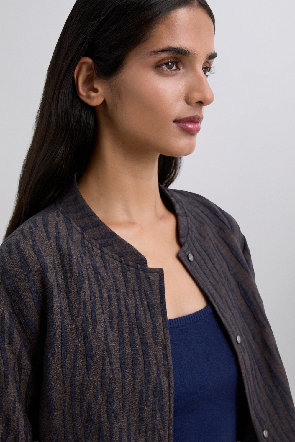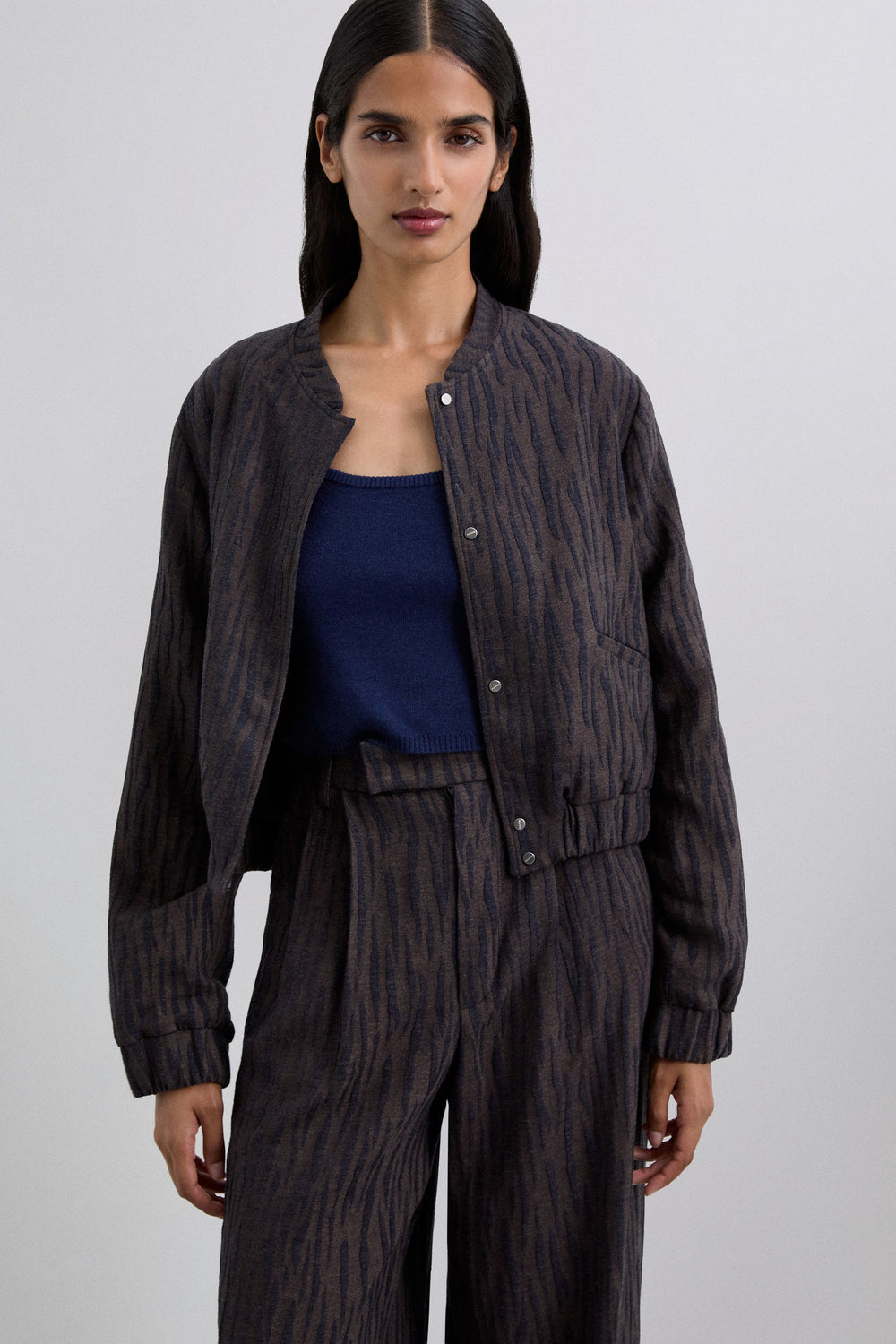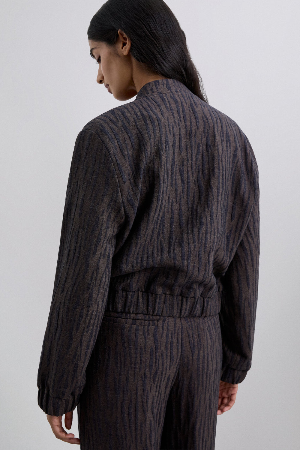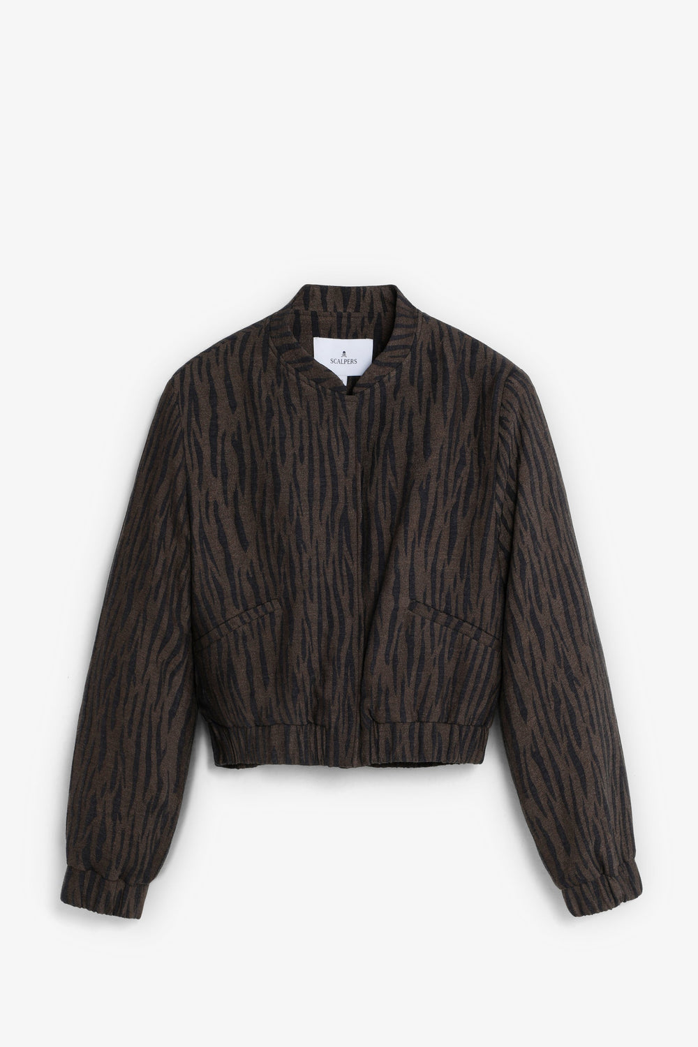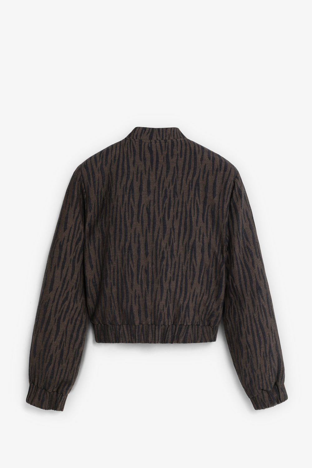 Chaqueta bomber con animal print. Mangas largas. Puños y cintura ligeramente elásticos. Cierre frontal mediante botones. Bolsillos frontales..