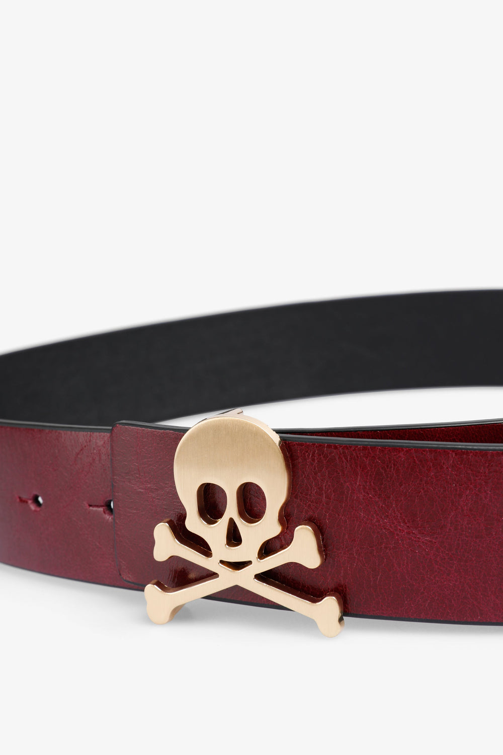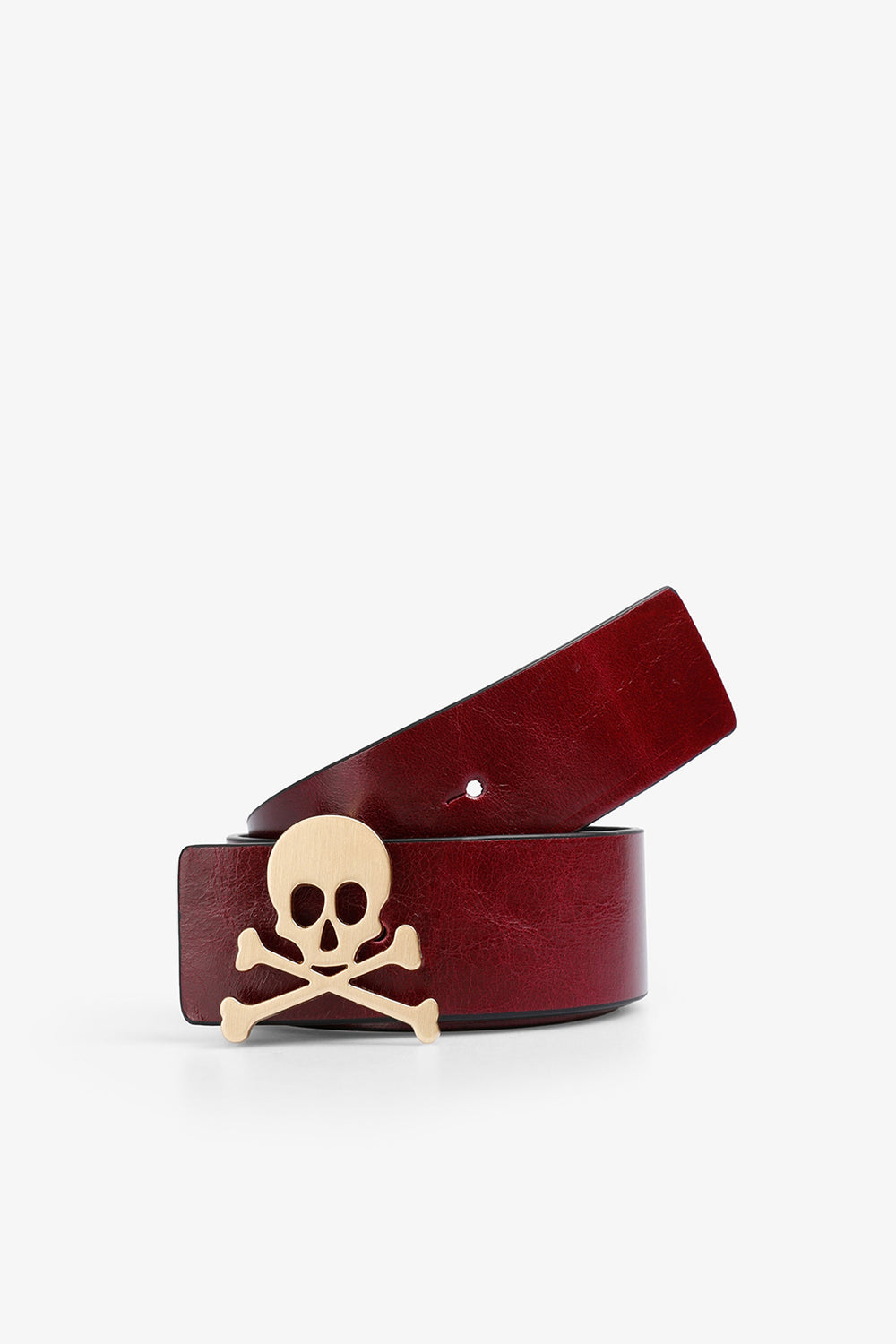 Cinturón confeccionado en 100% piel. Detalle frontal de calavera metalizada.