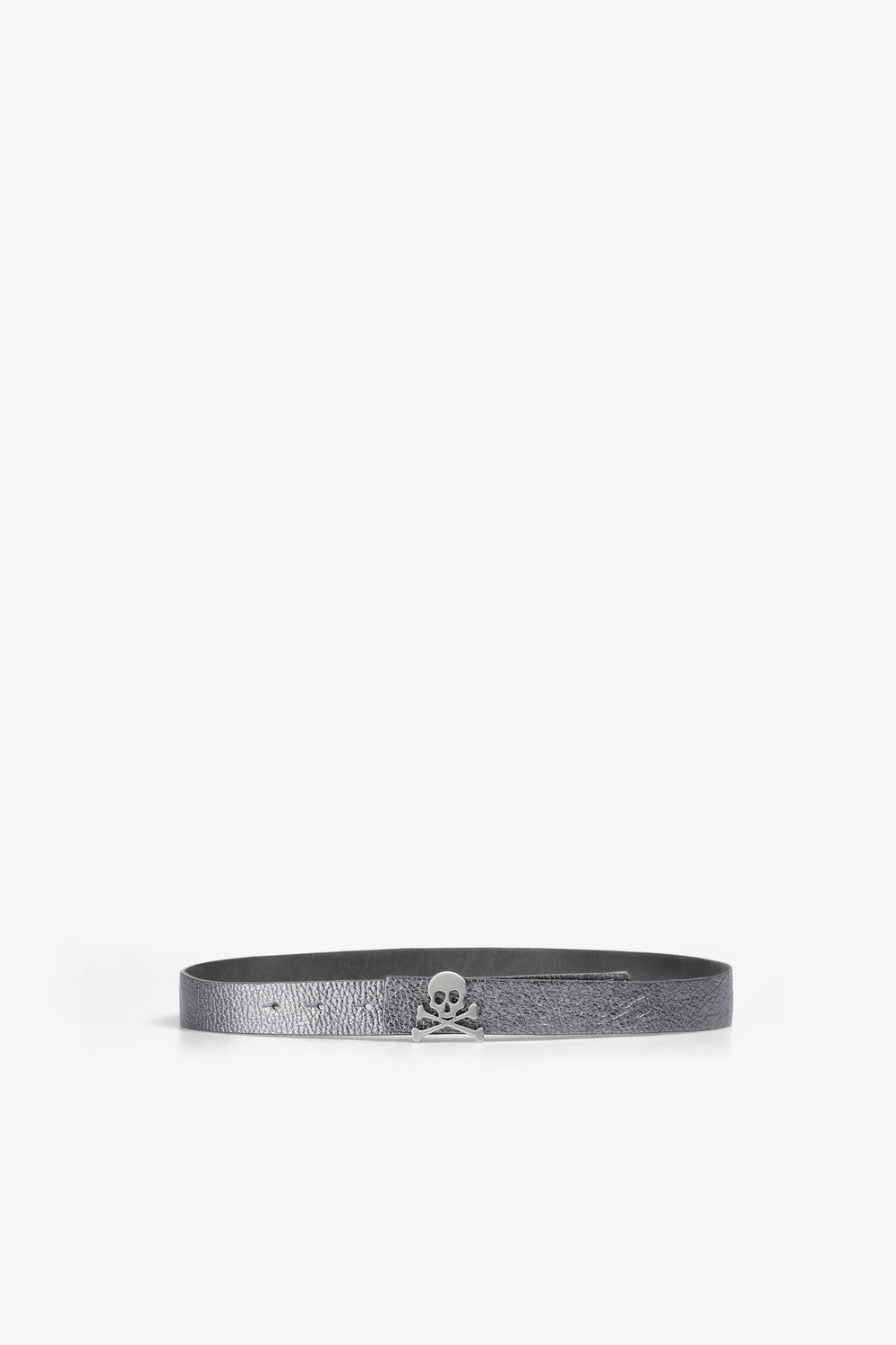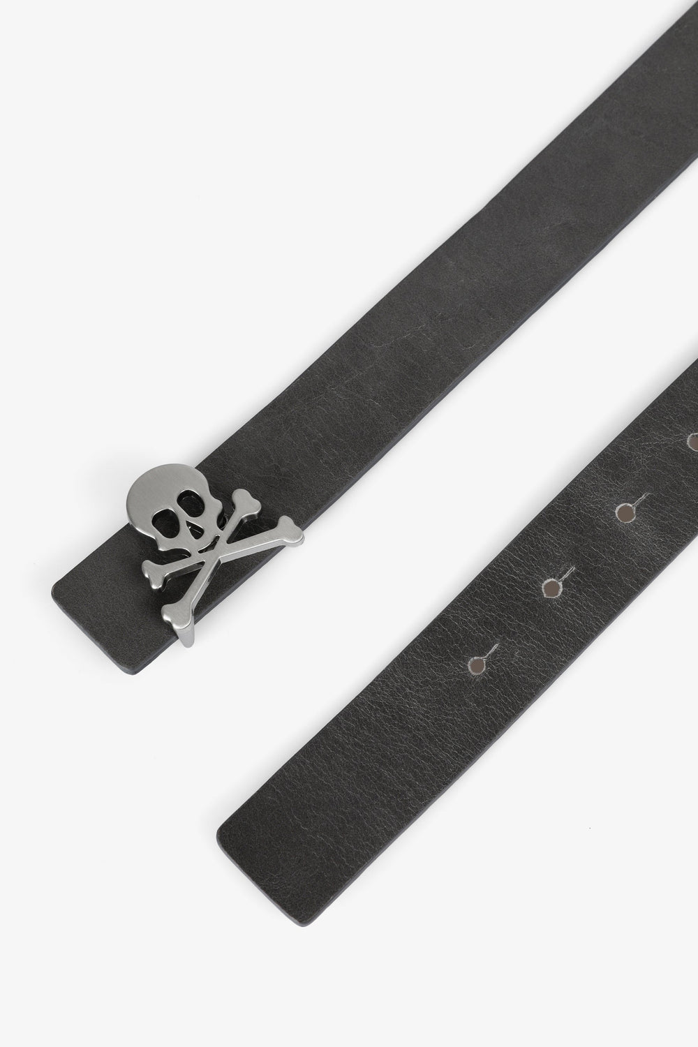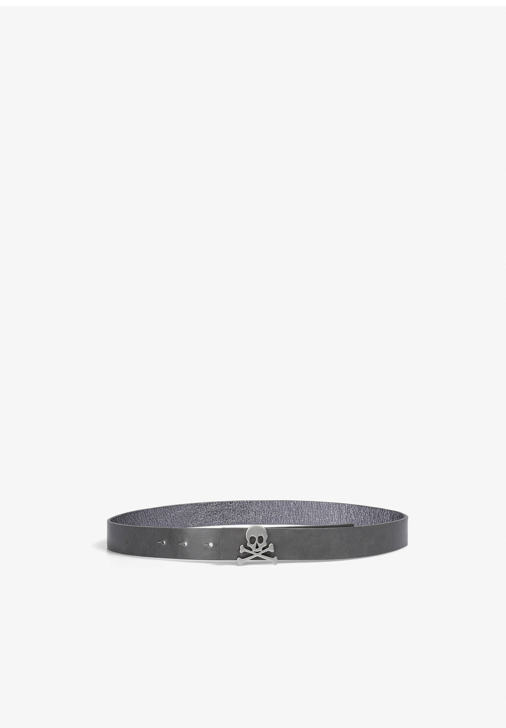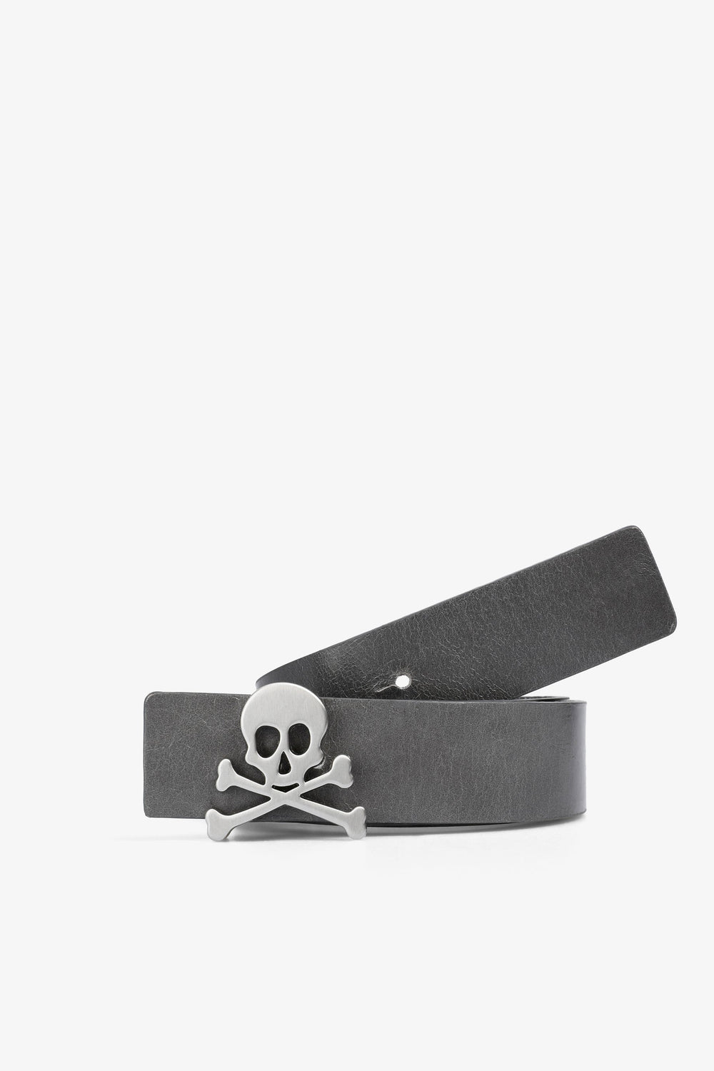 Cinturón confeccionado en 100% piel. Reversible ajustable. Detalle de calavera metalizada.