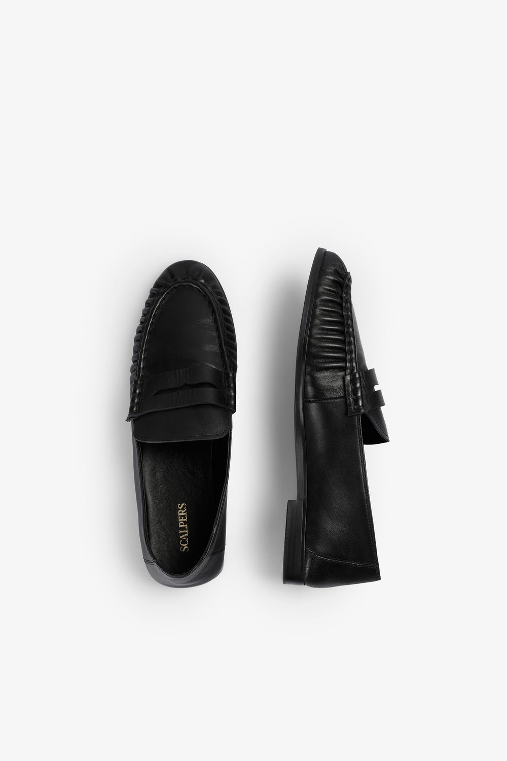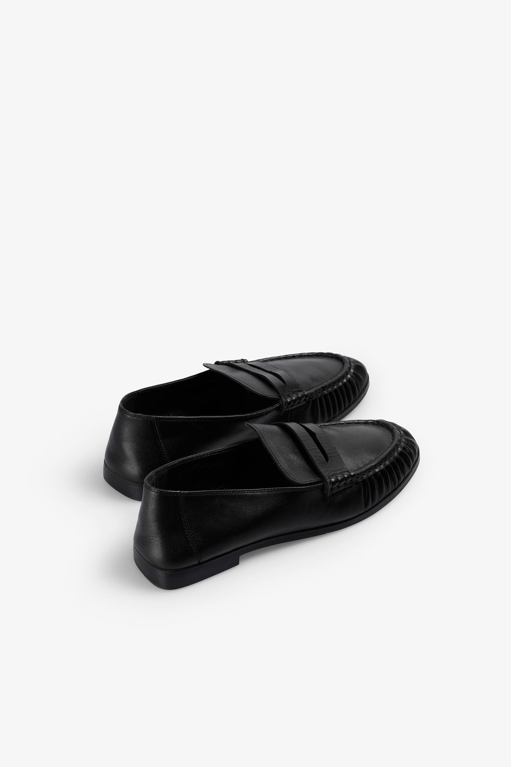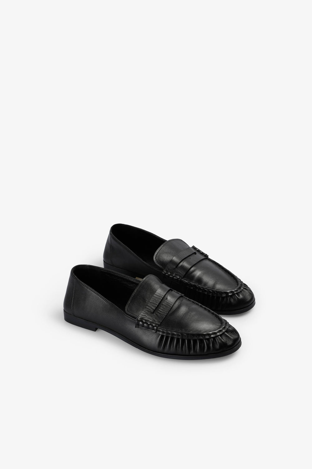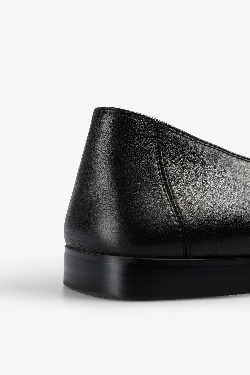 Mocasín confeccionado en 100% piel. Antifaz. Horma redonda en forma de pico.
