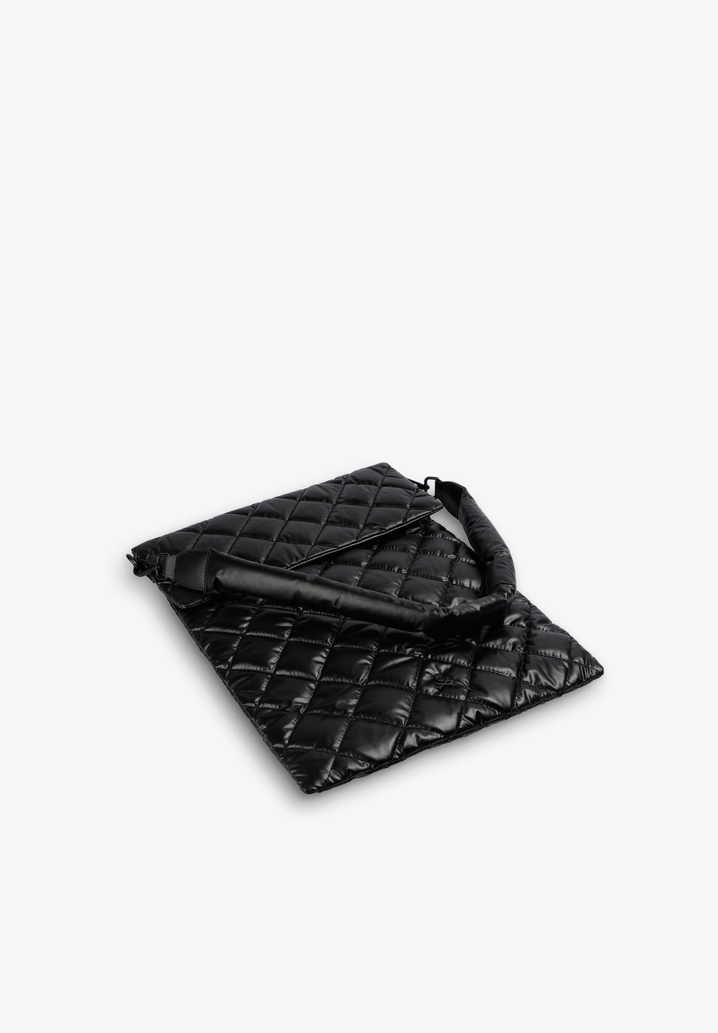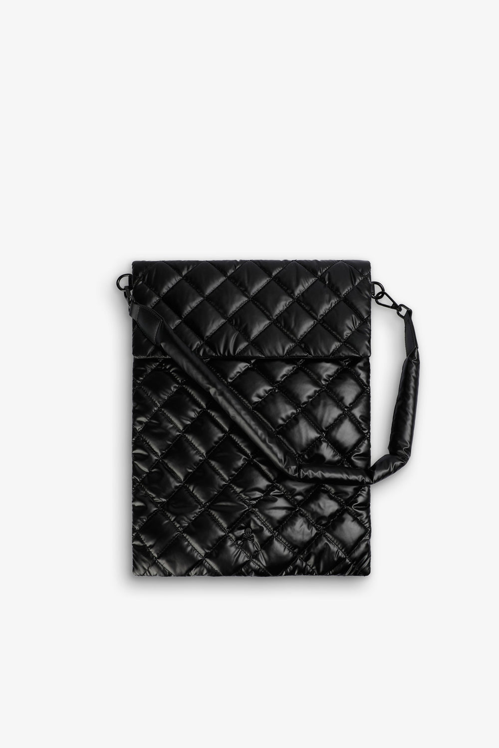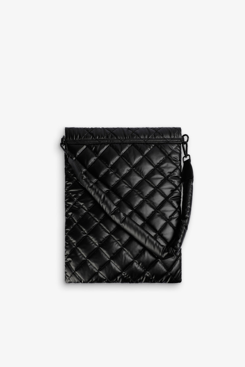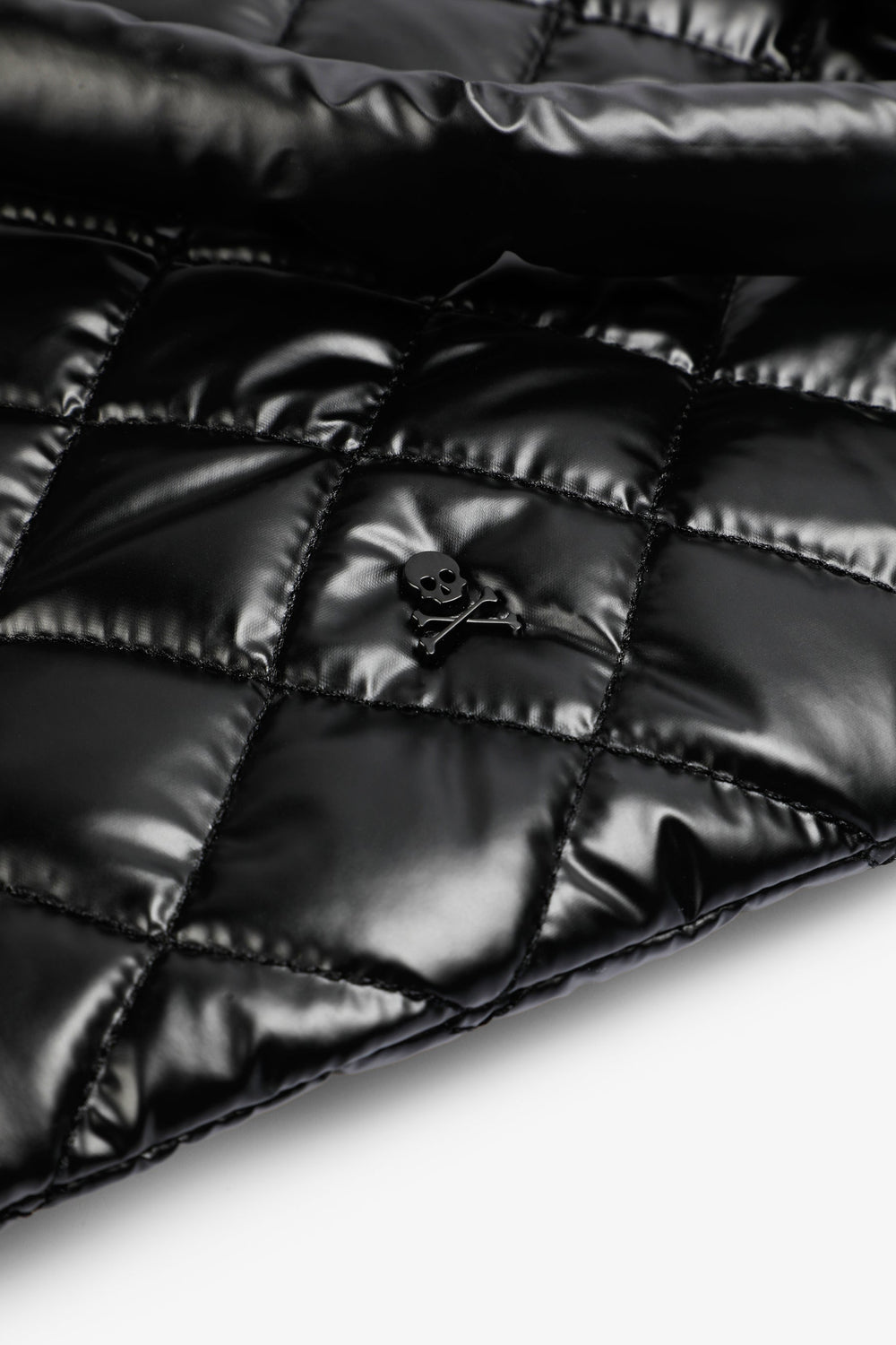 Portfolio acolchado. Asa de mano. Detalle frontal de calavera metalizada.
