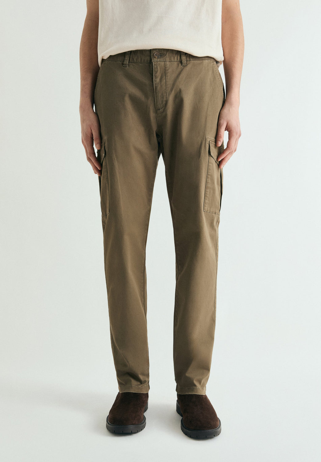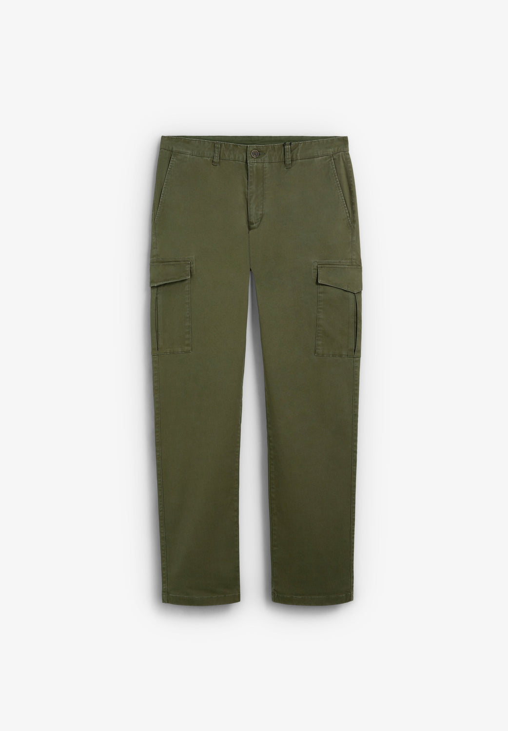 Pantalón cargo confeccionado en algodón. Slim fit. Dos bolsillos laterales con solapa y refuerzo en tapeta. Dos bolsillos de vivo en espalda. Cierre frontal con botón y cremallera.