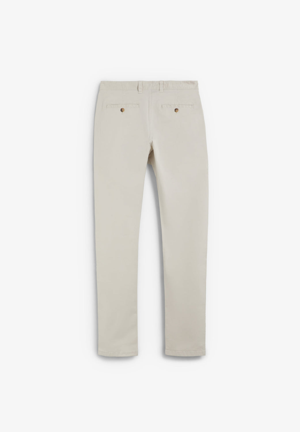 Pantalones chinos confeccionados en mezcla de algodón. Cierre mediante botones ocultos en tapeta. Bolsillos laterales y en espalda. Slim fit. Trabillas en cintura.
