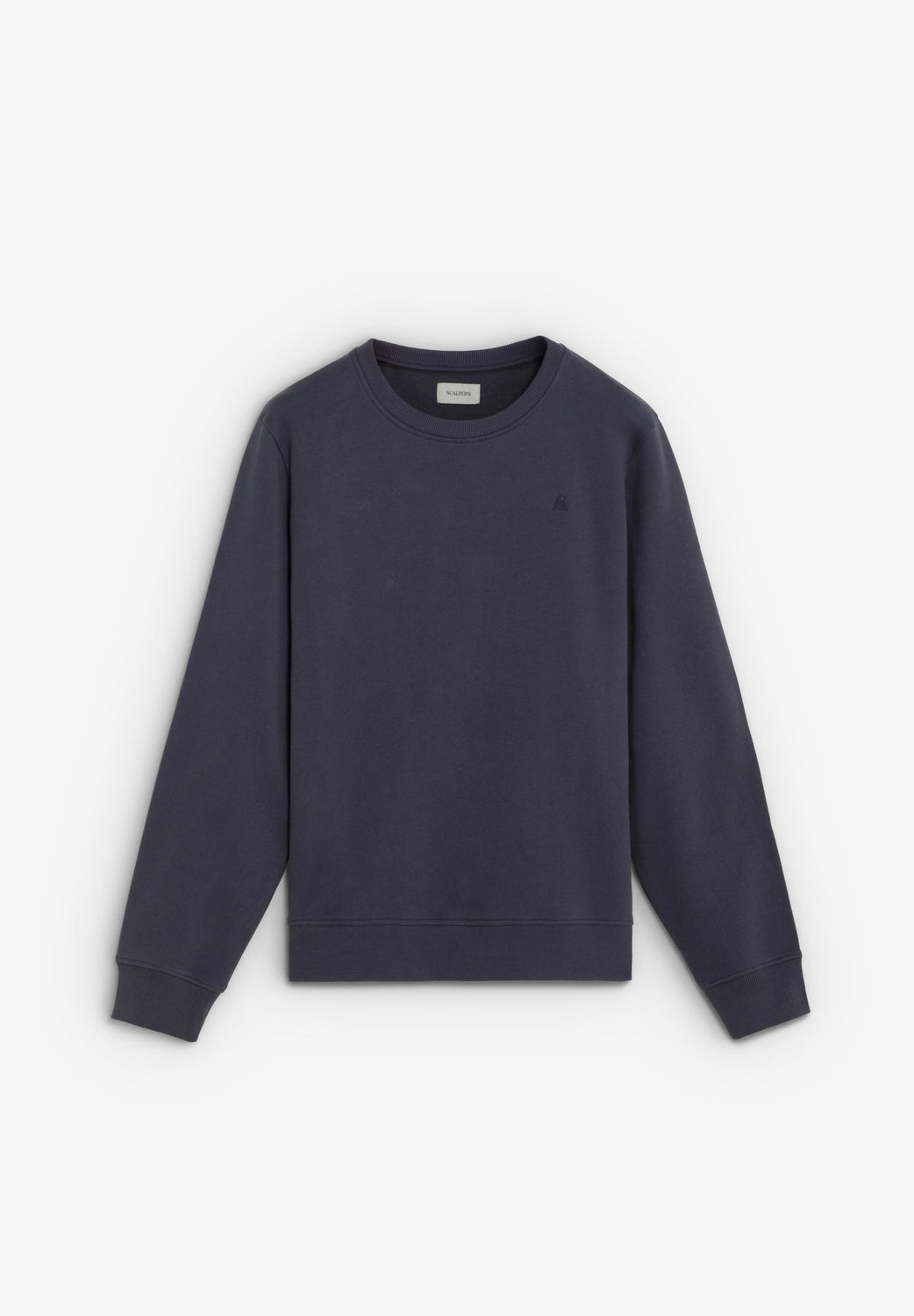 Sudadera confeccionada en 100% algodón BCI. Efecto lavado. Cuello redondo. Logotipo bordado a tono en pecho. Acabados en canalé.