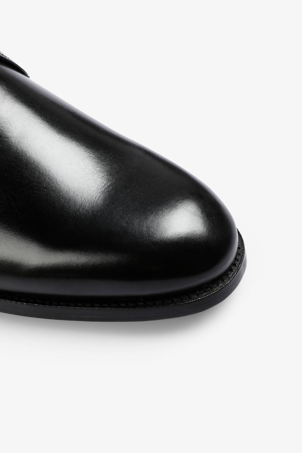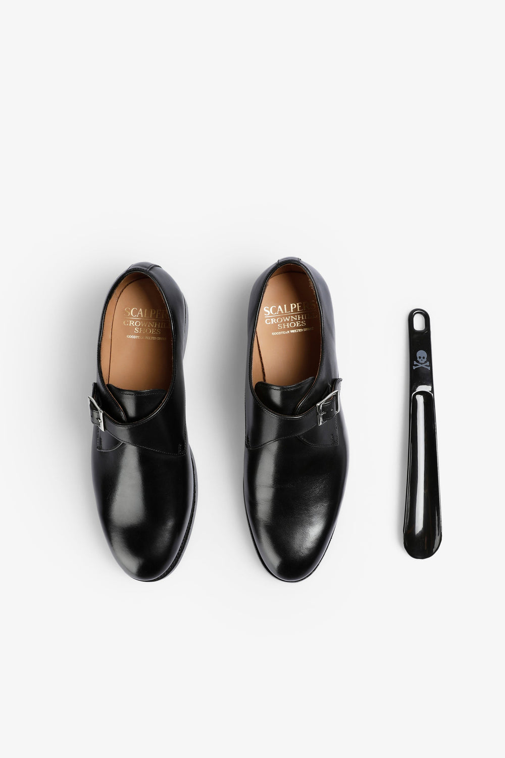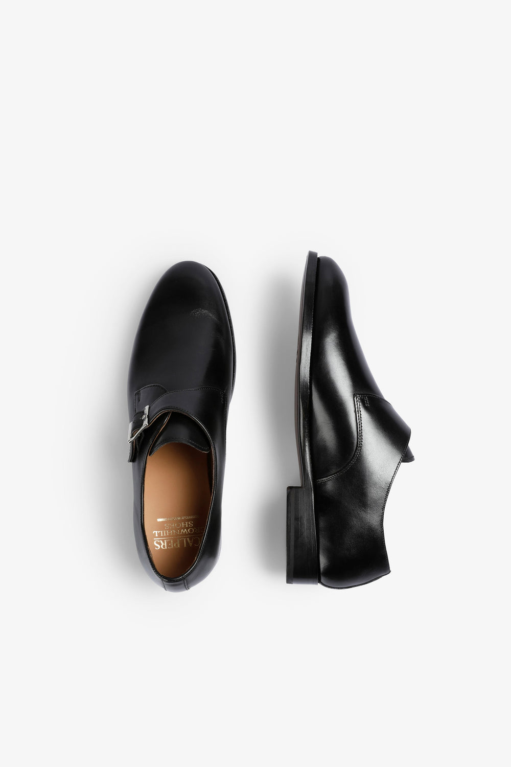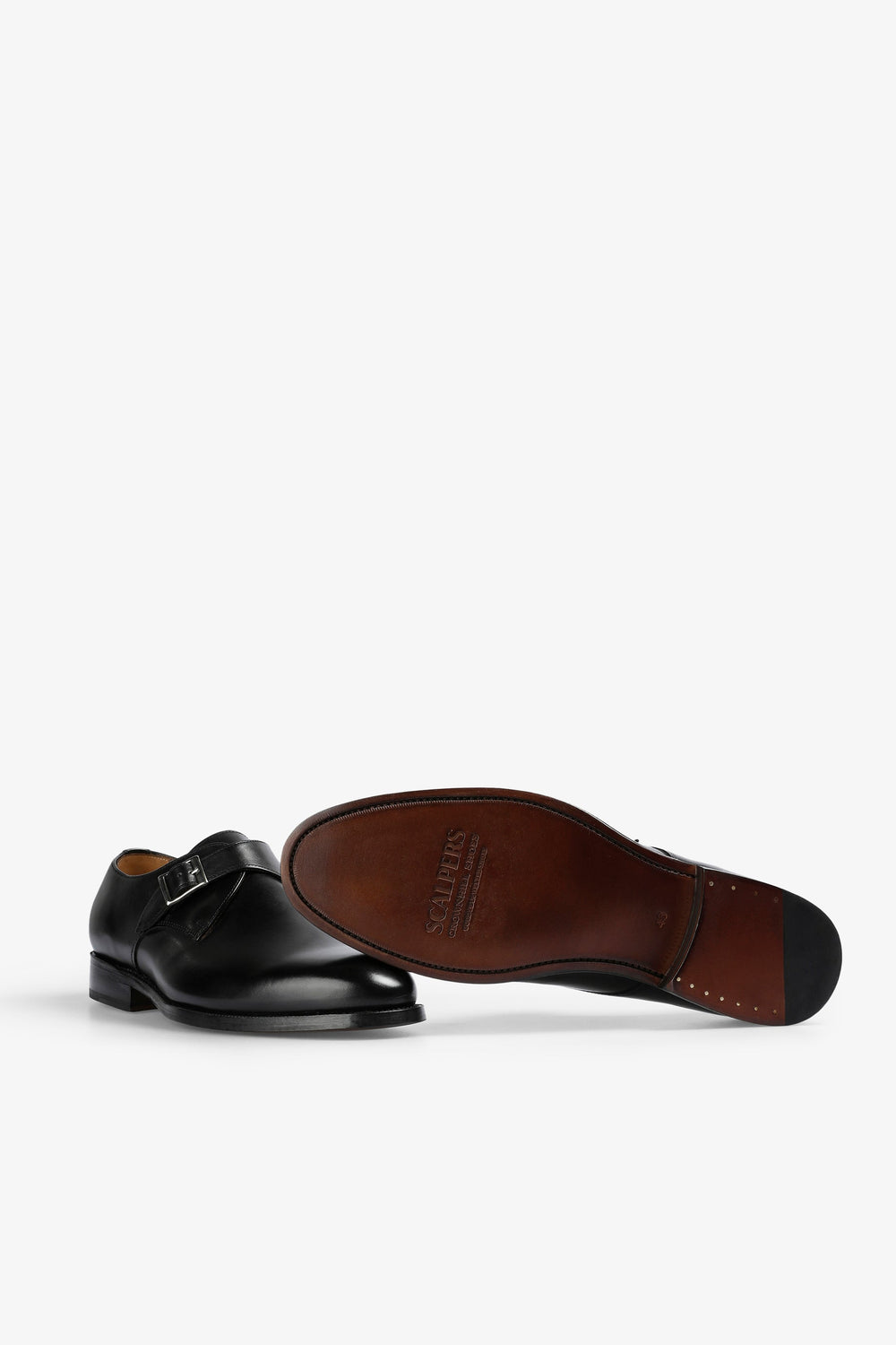 Zapatos monk confeccionados en cuero. Cierra con hebilla metálica ajustable. Suela de piel. Detalle de logo en plantilla.