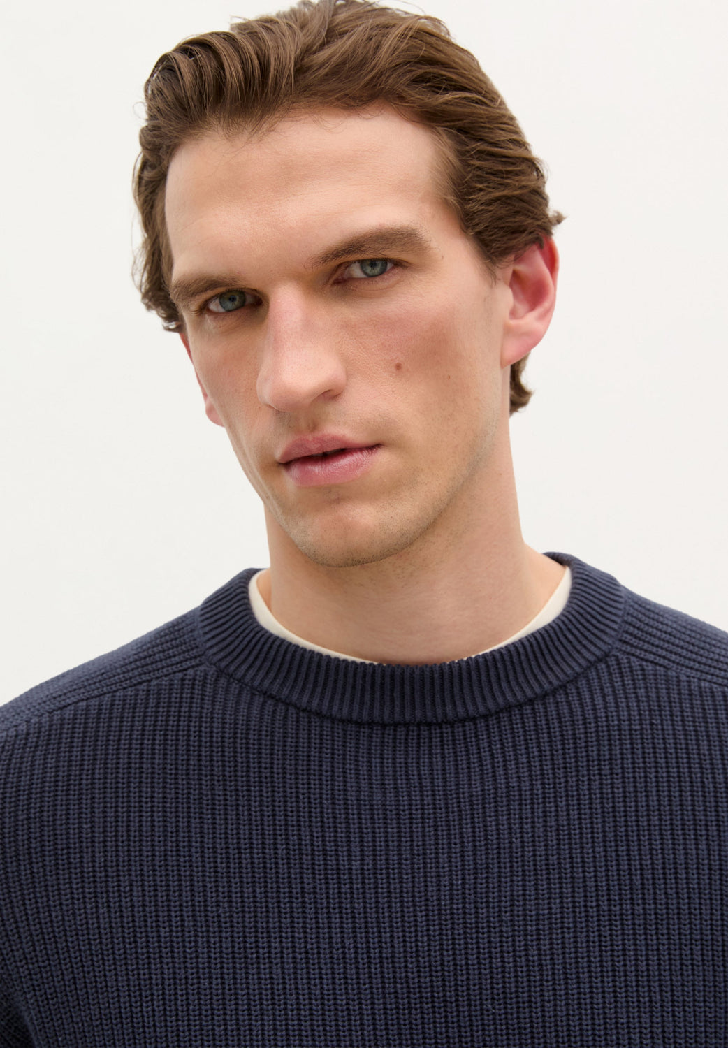 Jersey de punto perlado. Confeccionado en 100% Algodón BCI. Corte Regular fit. Cuello redondo. Manga ranglan larga. Acabados en rib.
