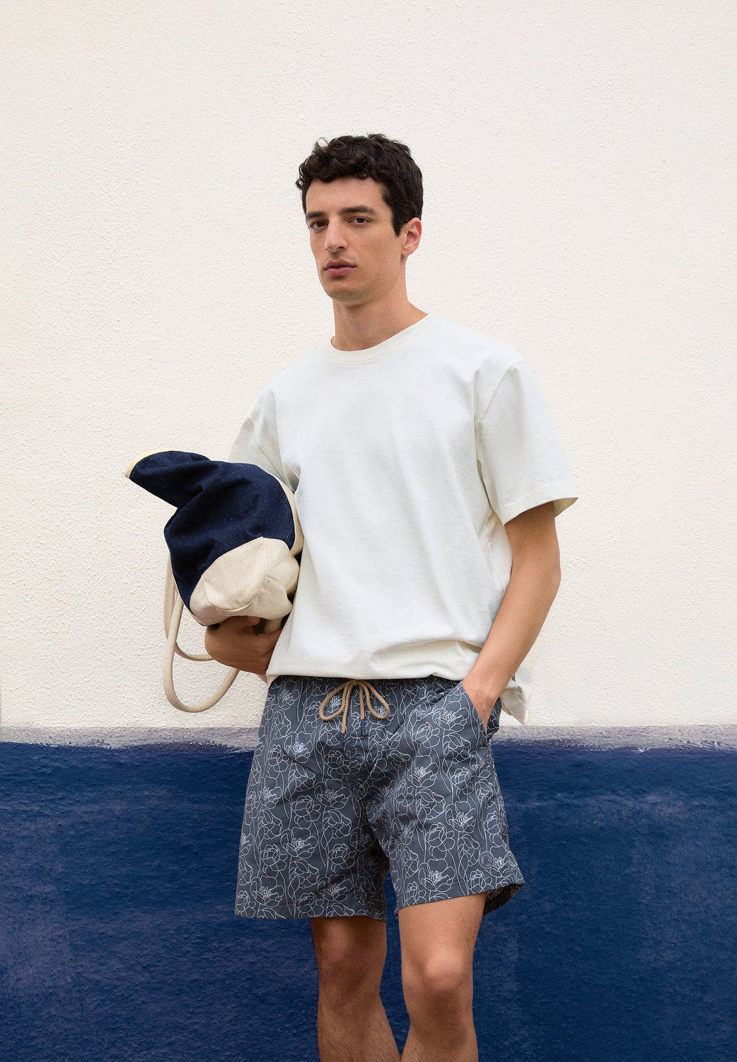 Bañador confeccionado en tejido técnico. Cintura elástica ajustable con cordón. Bolsillos laterales y detalle de bolsillo trasero de plastrón. Forro interior.