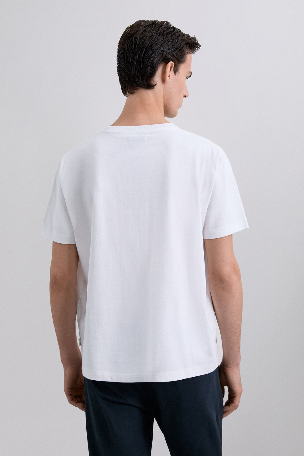 Camiseta confeccionada en 100% Algodón Orgánico. Manga Corta. Cuello Redondo. Boxy fit. Acabados en RIB.