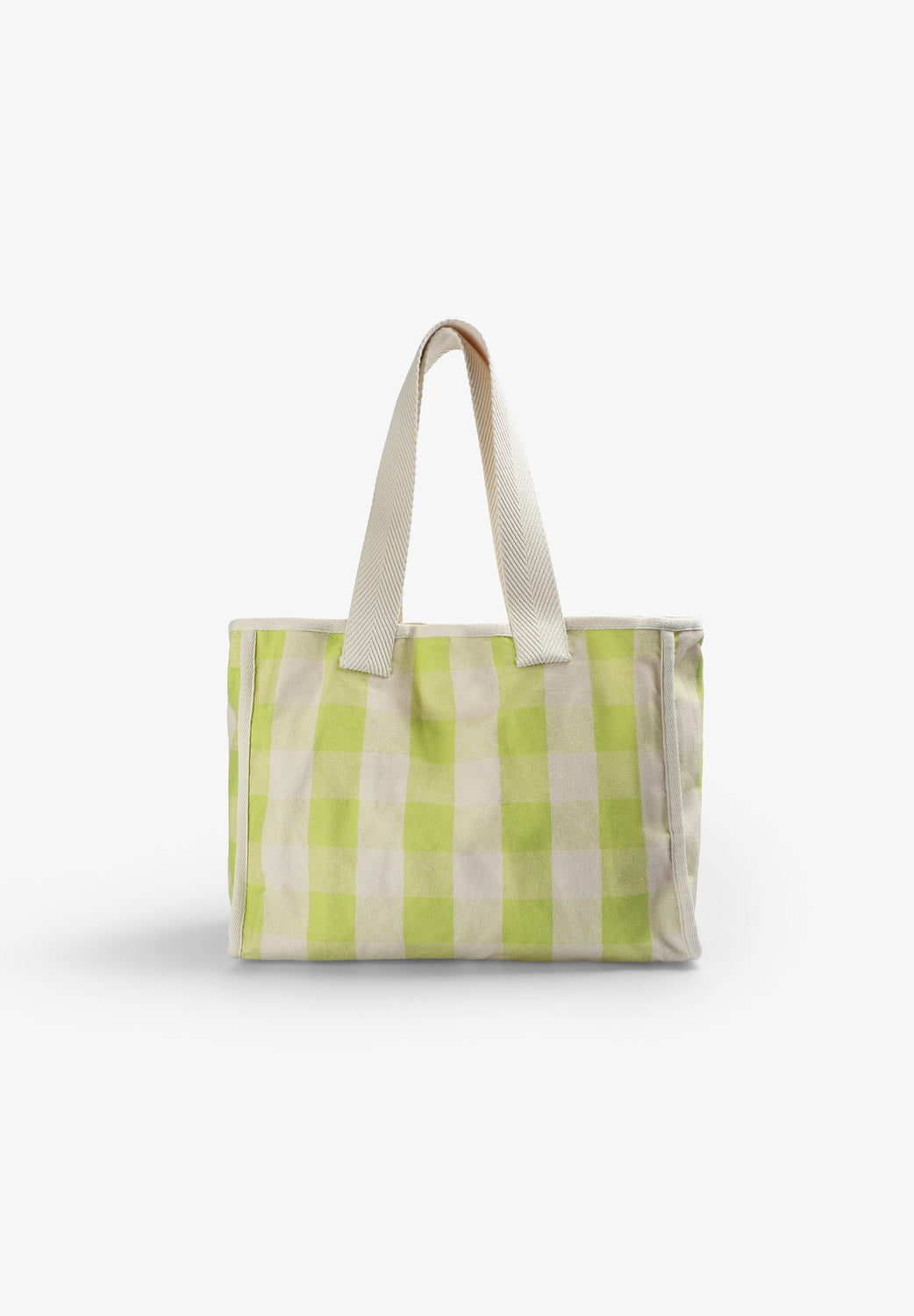 Bolso tipo shopper fabricado en tejido de algodón. Compartimento principal con cierre por botón. Dispone de dos asas de mano. Detalle de logo parche bordado en parte frontal.