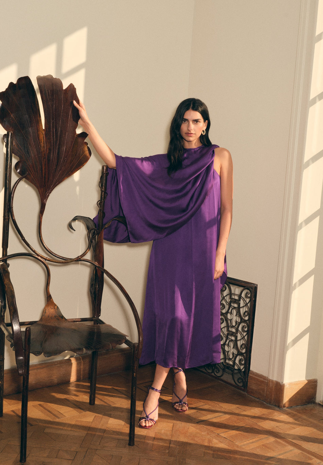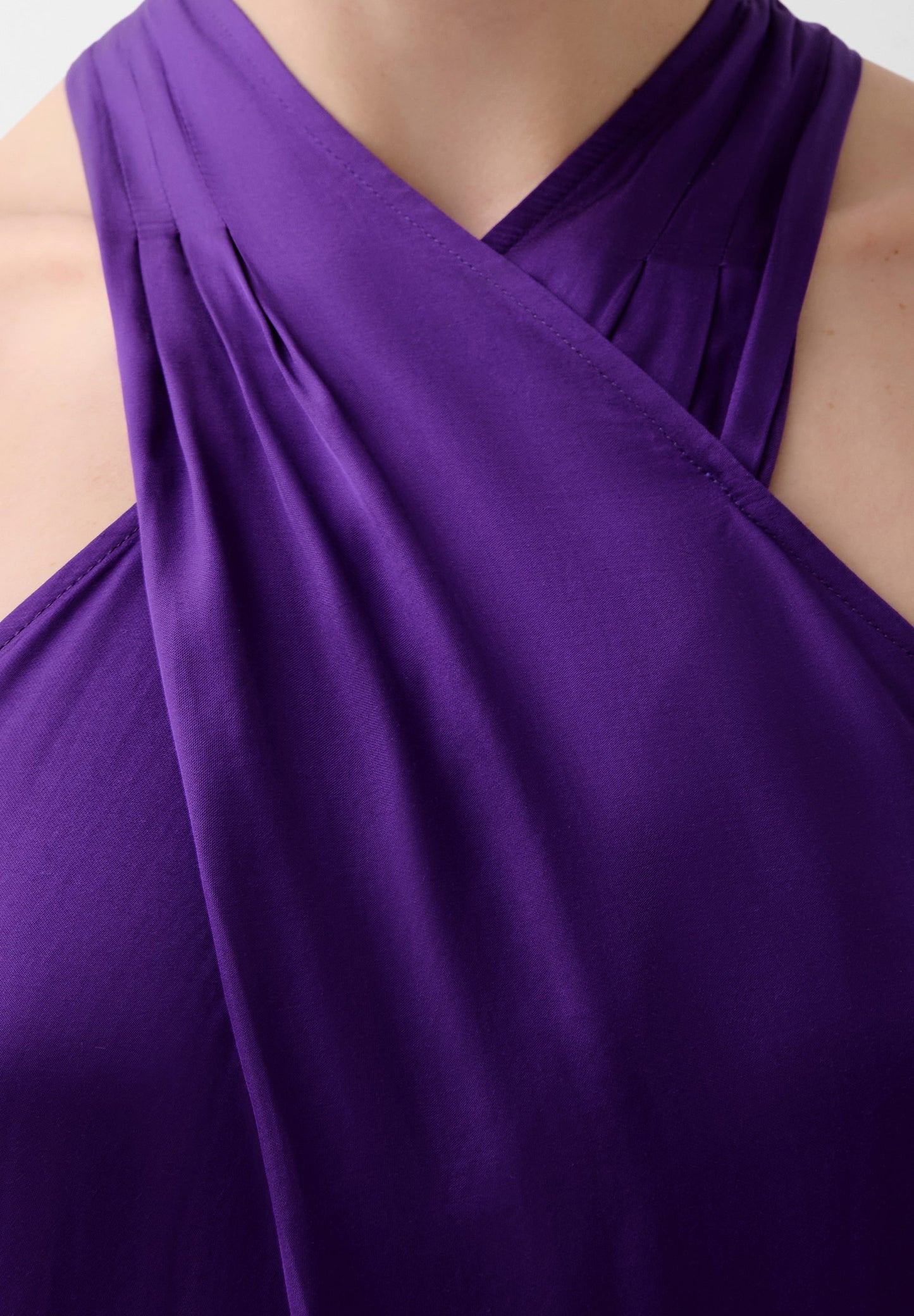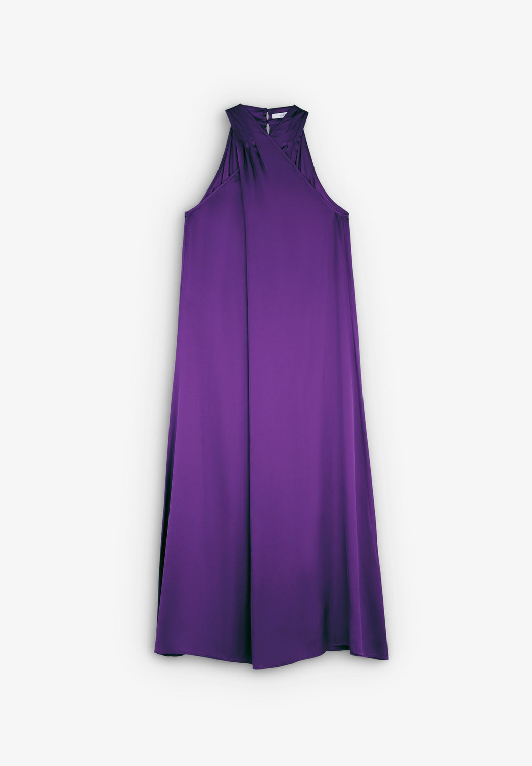 Vestido midi. Confeccionado en tejido fluido. Corte Regular Fit. Escote halter cruzado. Manga en sisa.