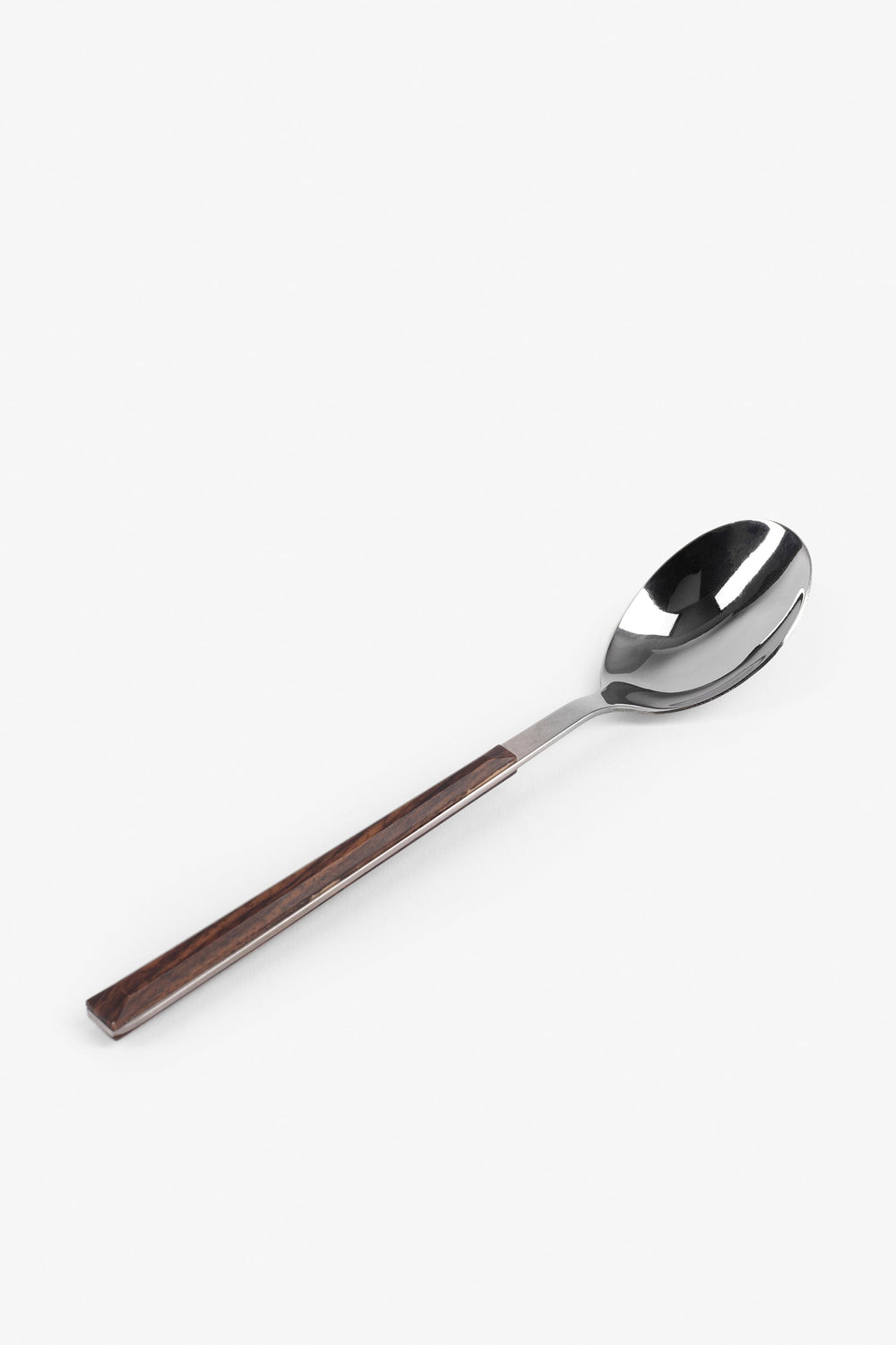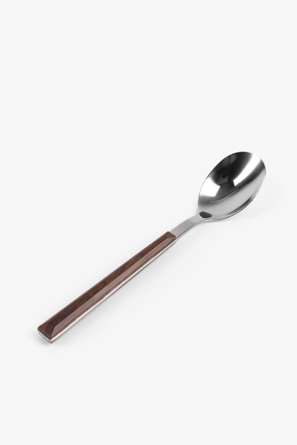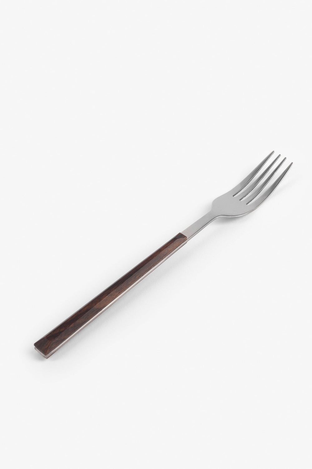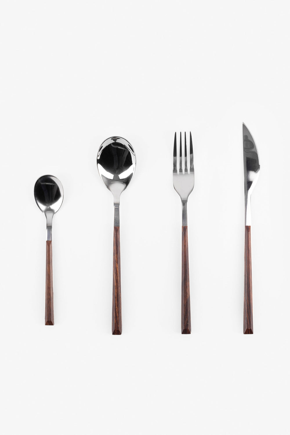 Cubertería con mango fino de resina con diseño en efecto madera.