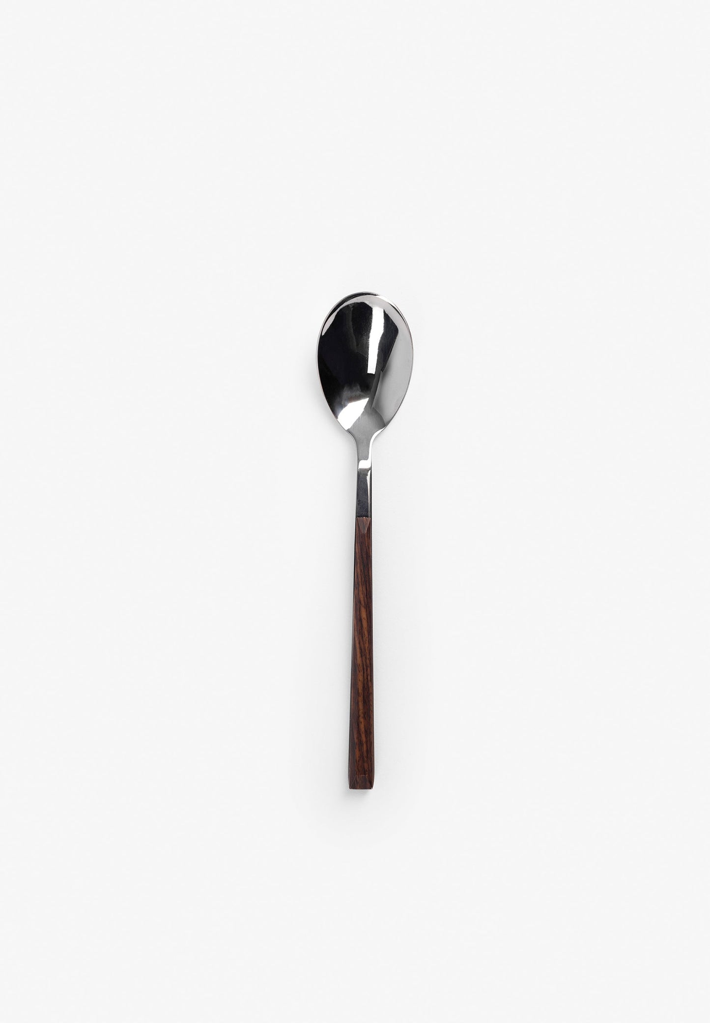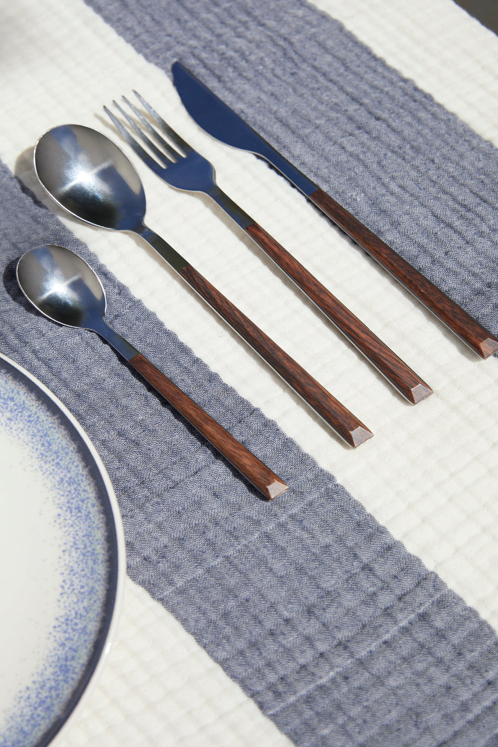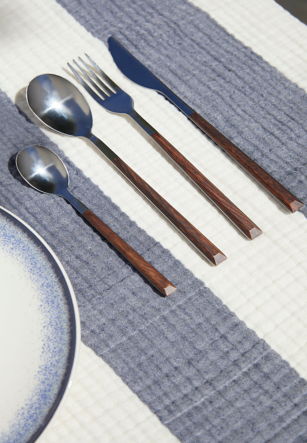 Cubertería con mango fino de resina con diseño en efecto madera.