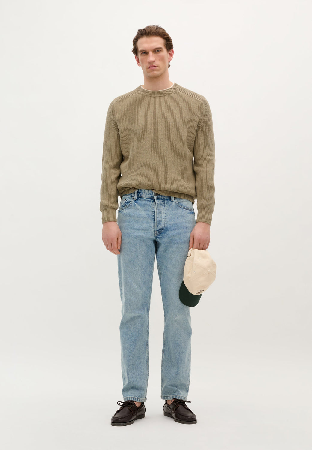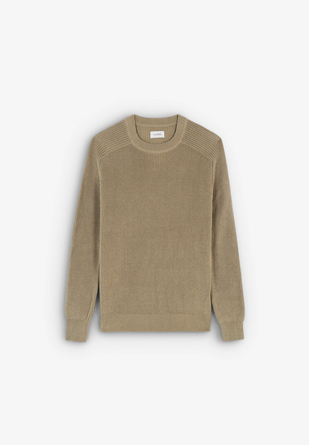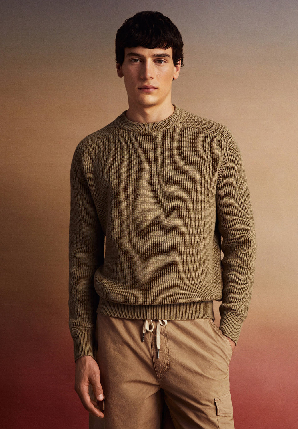 Jersey de punto perlado. Confeccionado en 100% Algodón BCI. Corte Regular fit. Cuello redondo. Manga ranglan larga. Acabados en rib.