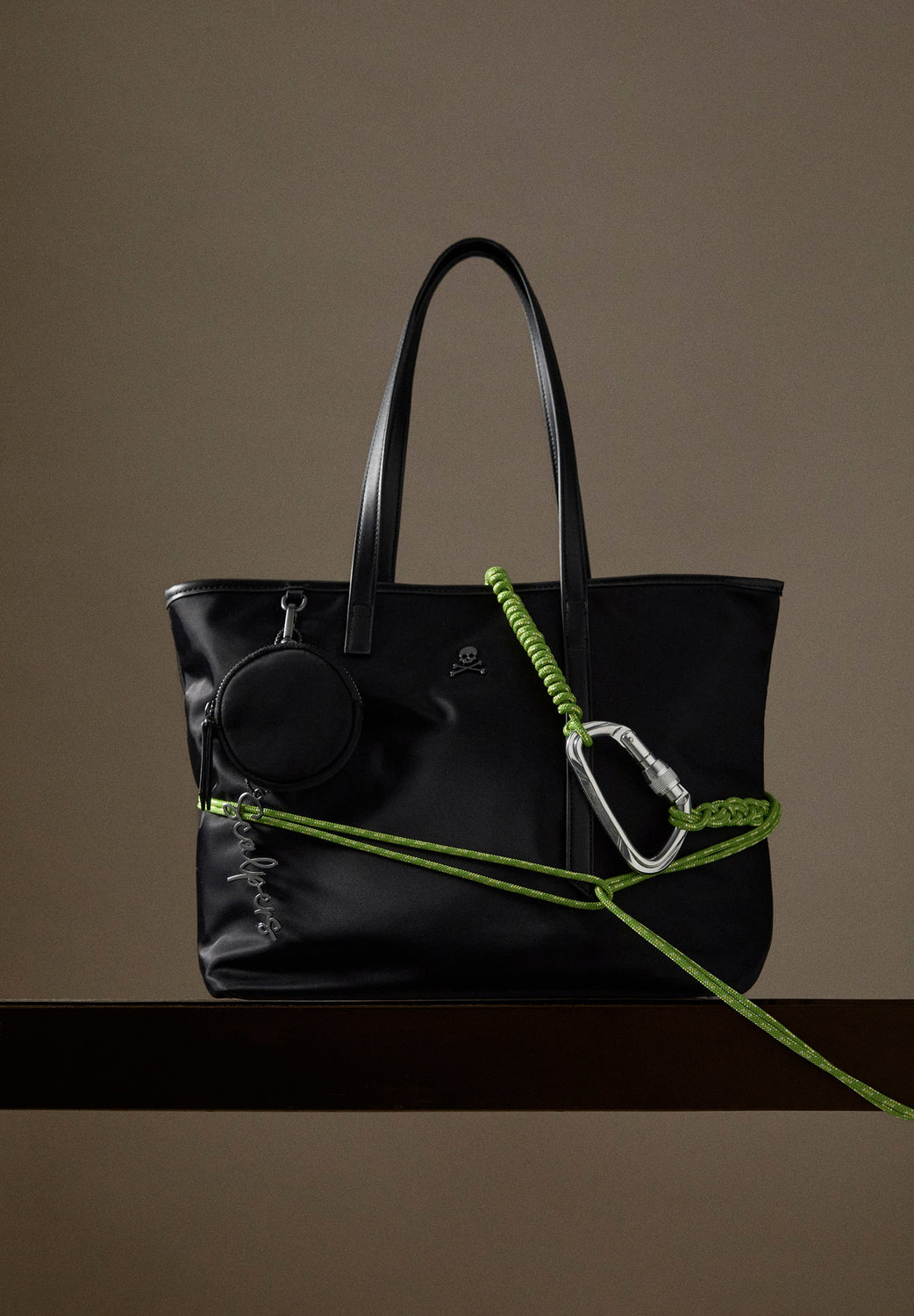 Bolso shopper confeccionado en tejido nylon. Doble asa y cierre con cremallera. Detalle de monedero.