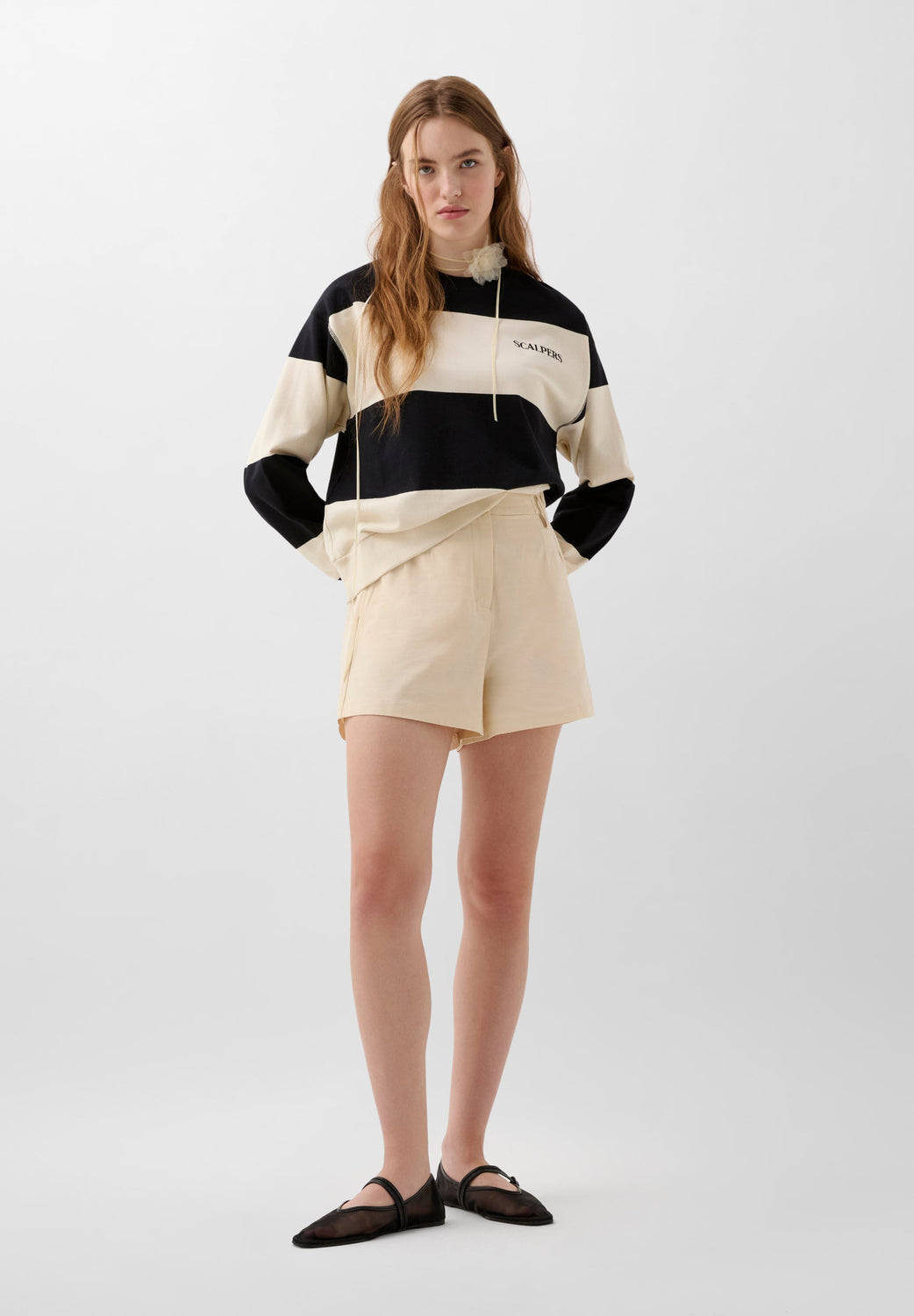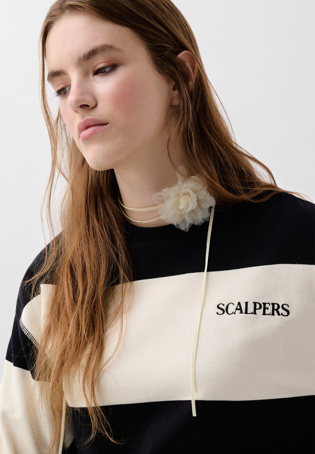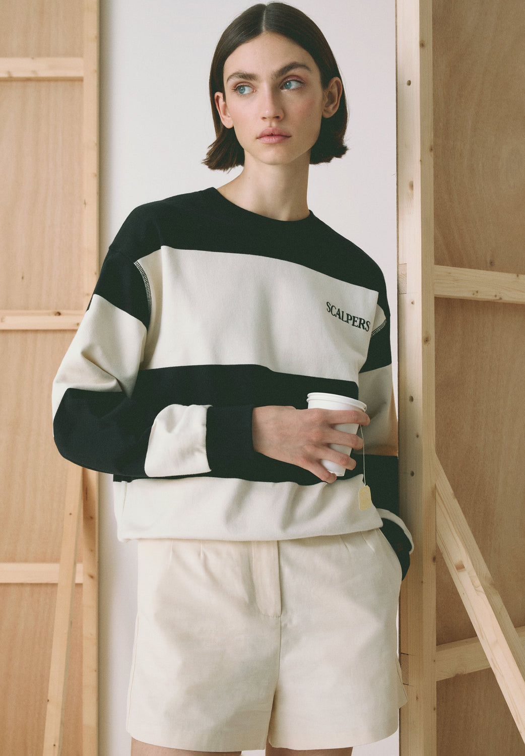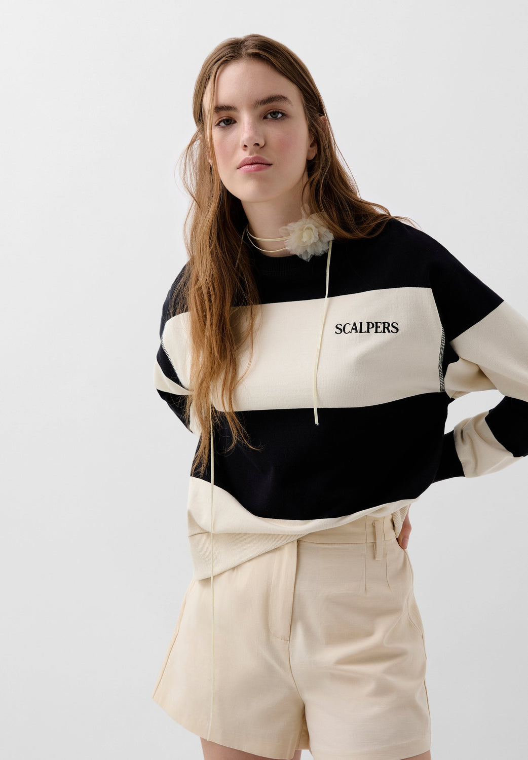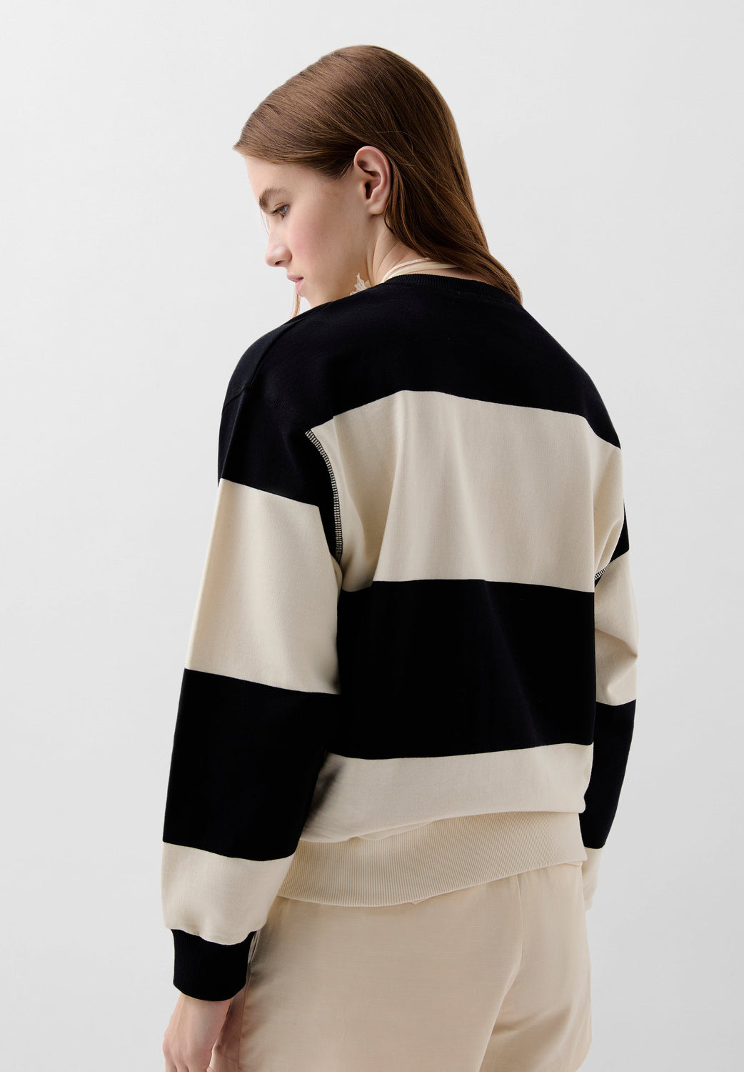 Sudadera de rayas confeccionada en 100% algodón. Regular fit, cuello redondo y manga larga. Logo bordado en pecho.