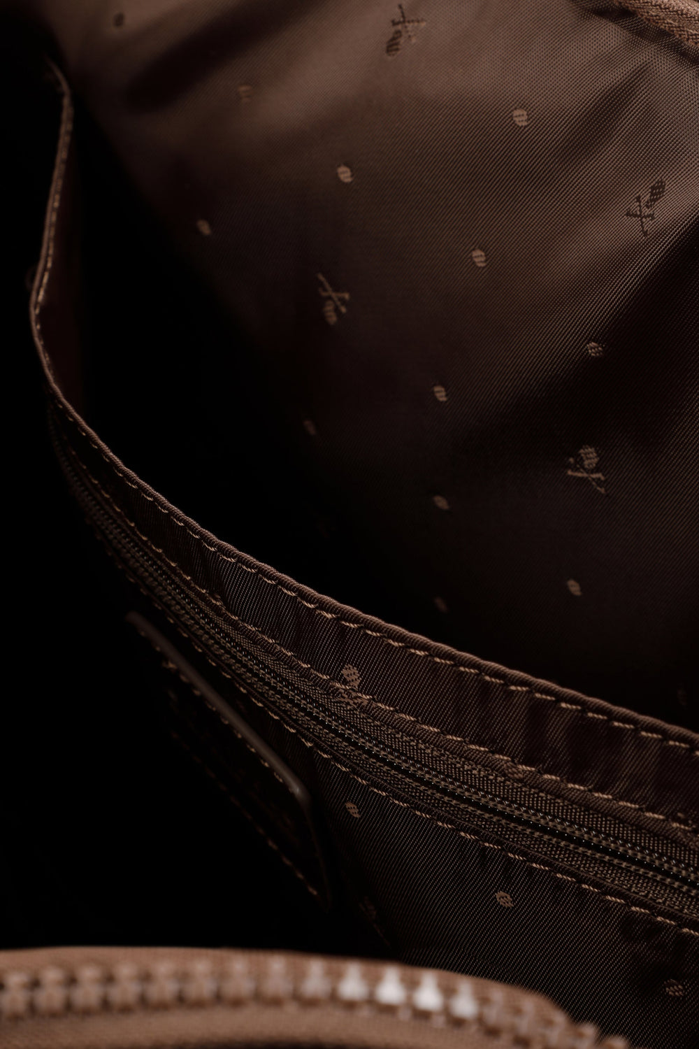 Portfolio con tapeta y cierre con cremallera. Detalle calavera bordada a tono. Detalle cuerda metálica con calavera. Forro interior con estampado calavera. Bolsillo interior con cremallera.