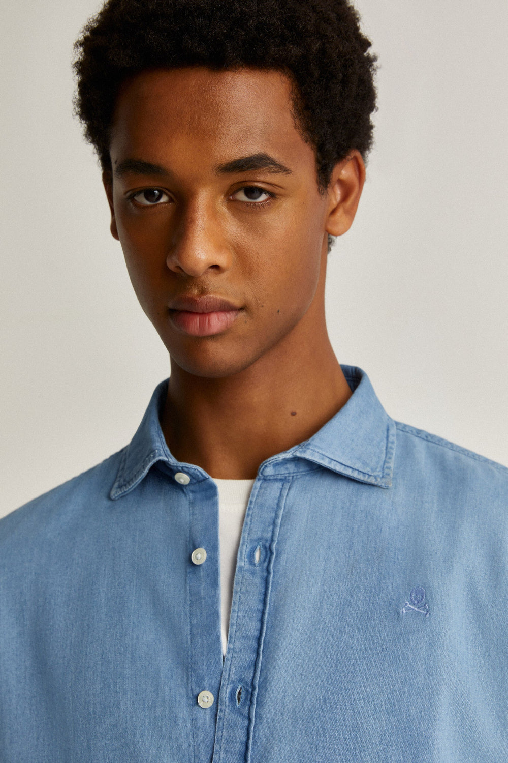 Camisa denim con calavera bordada en pecho