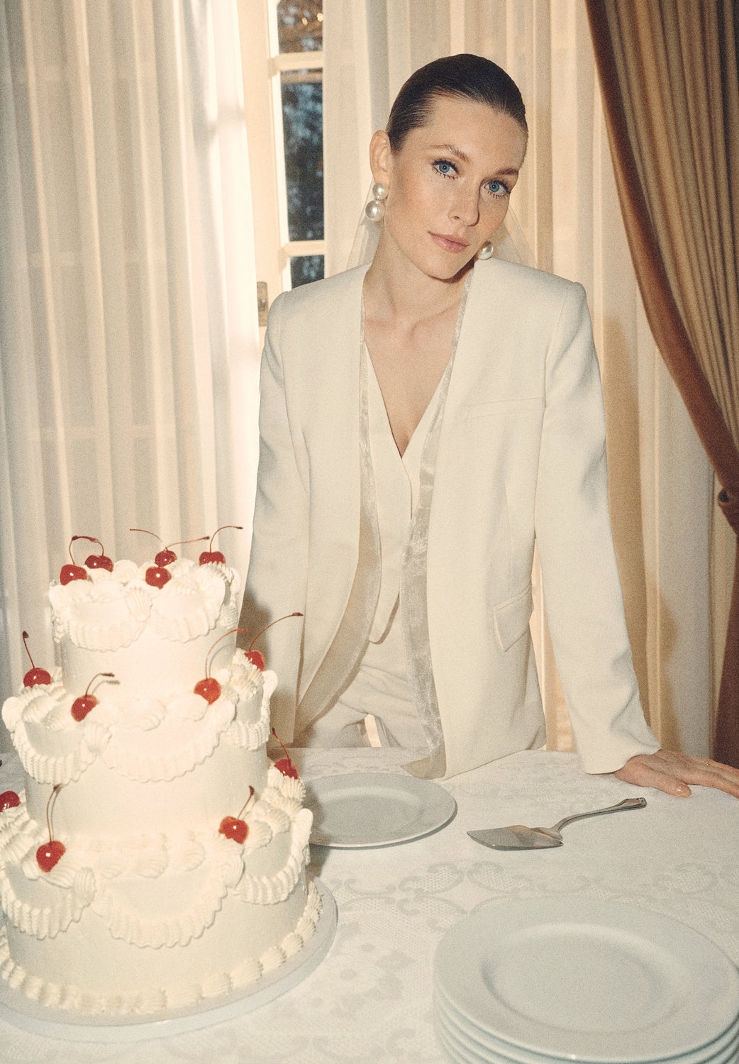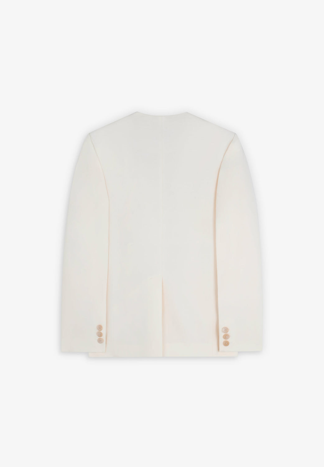 Blazer lisa confeccionada en tejido fluido. Corte Regular Fit, sin solapa con organza desmontable con botón interior. Bolsillo en pecho y bolsillos frontales con tapeta.