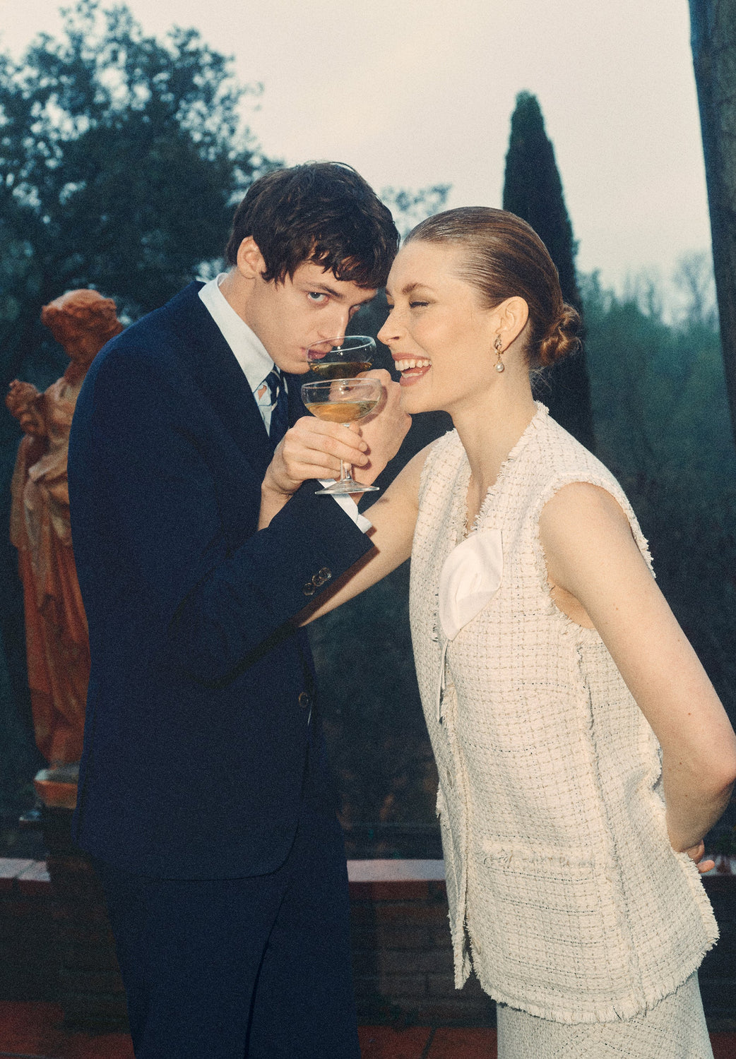 Chaleco confeccionado en mezcla de algodón con hilo metalizado. Corte Regular fit, escote de pico y cierre con botones. Manga en sisa con detalles desflecados en manga y el bajo. Bolsillos de parche frontales.