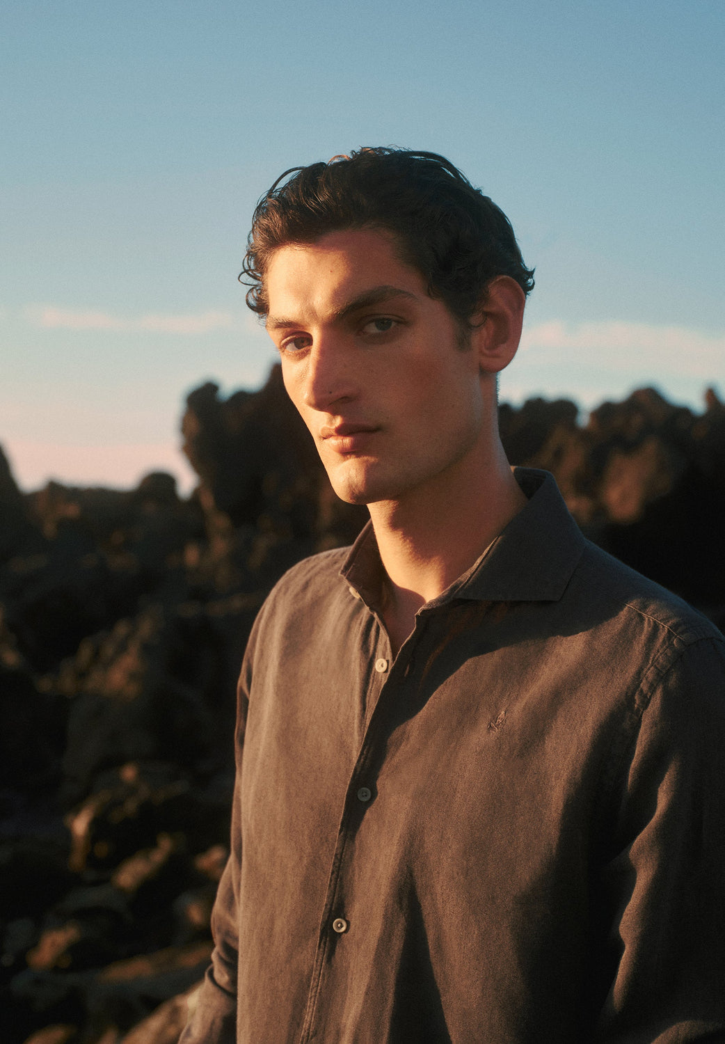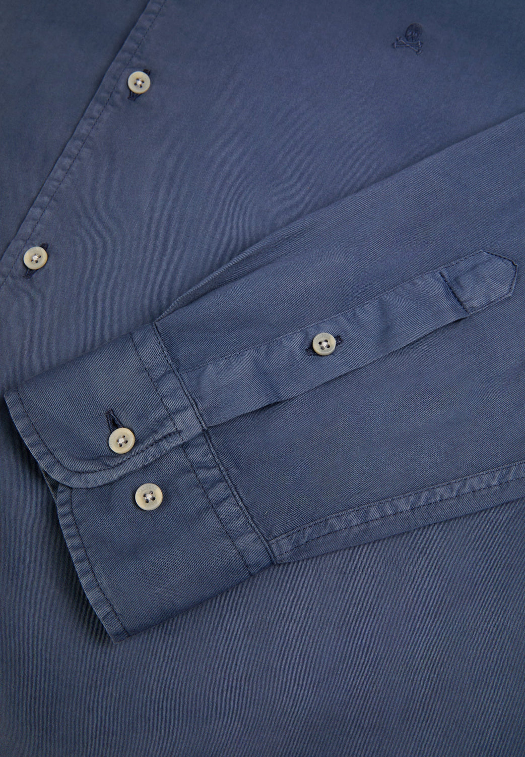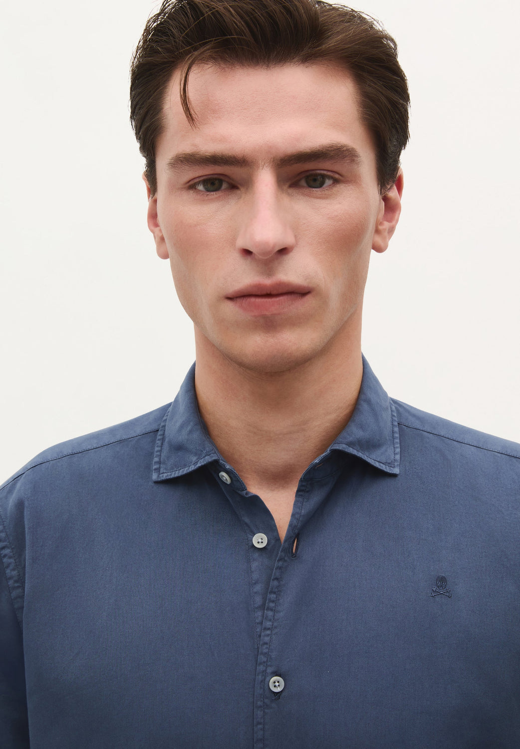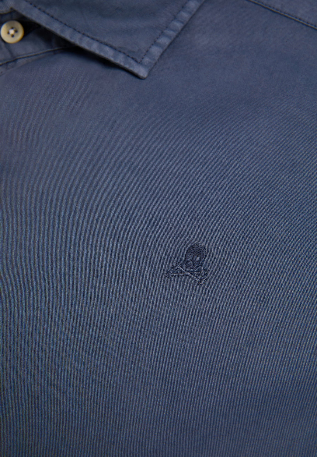 Camisa confeccionada en 100% algodón. Regular fit, cuello clásico y cierre con botones. Manga larga terminada en puño con botones y calavera bordada a tono.