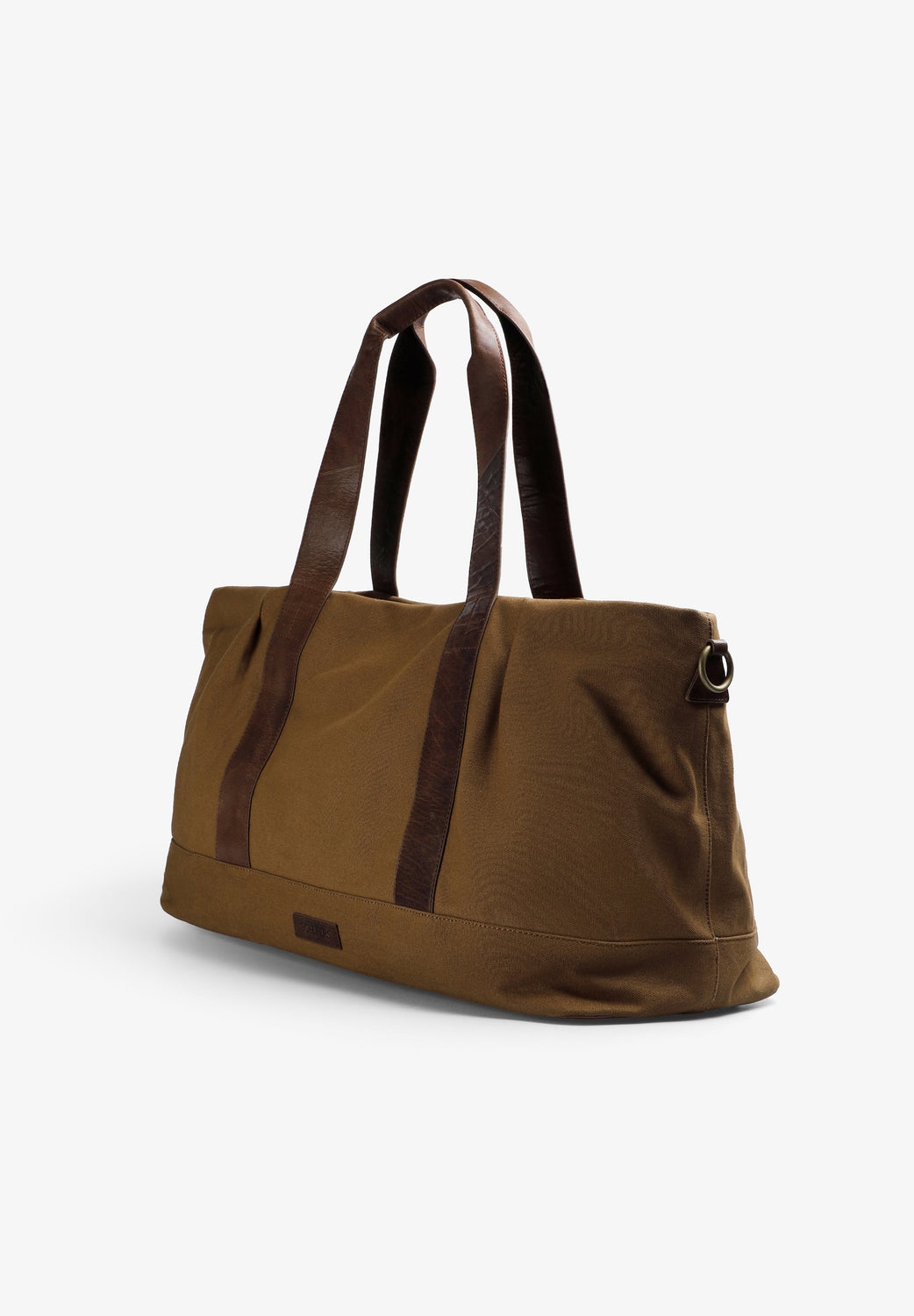 Bolsa de viaje confeccionada en 100% algodón. Cierre con cremallera, asas cortas y asa larga desmontable. Detalles en piel.
